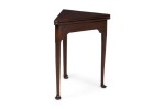 English Georgian-style (20th Century) mahogany triangular shaped flip top console table (Top measures 30.25" wide x 30.25" deep when opened)
