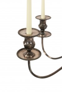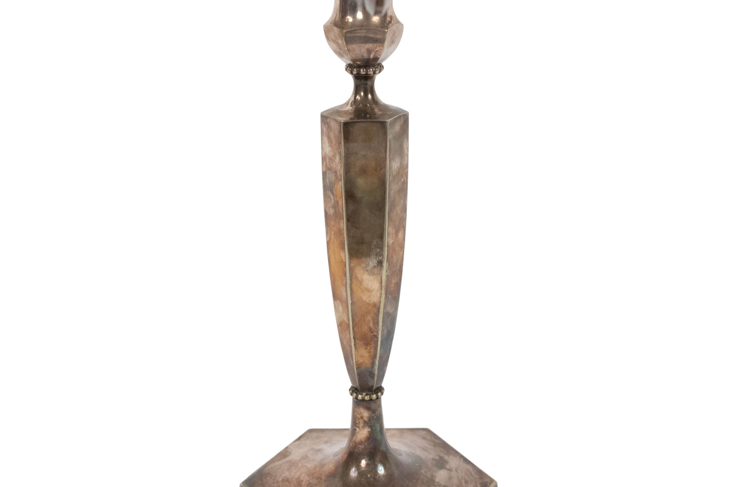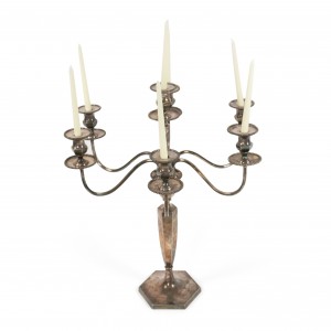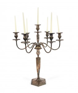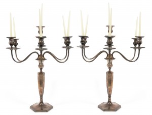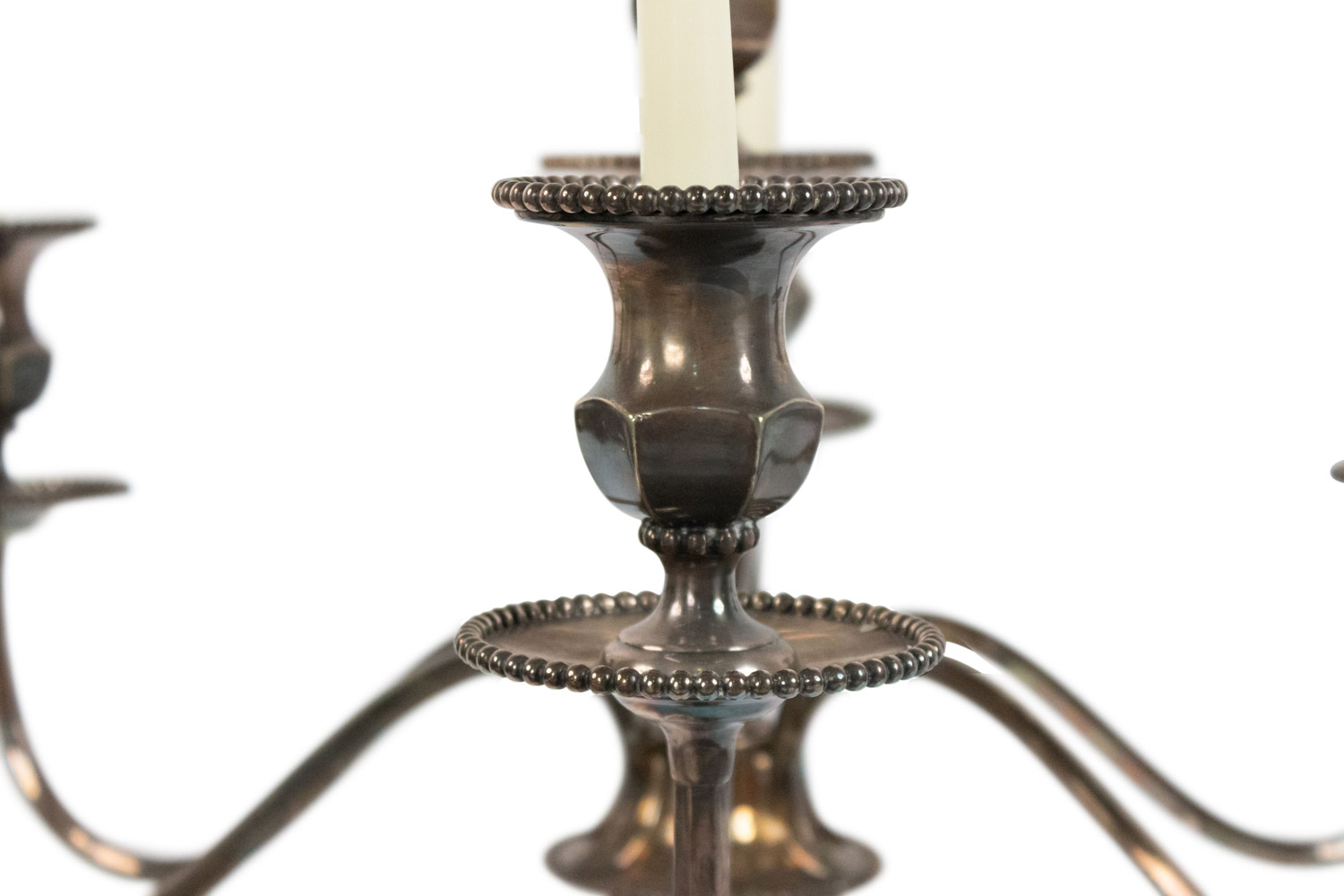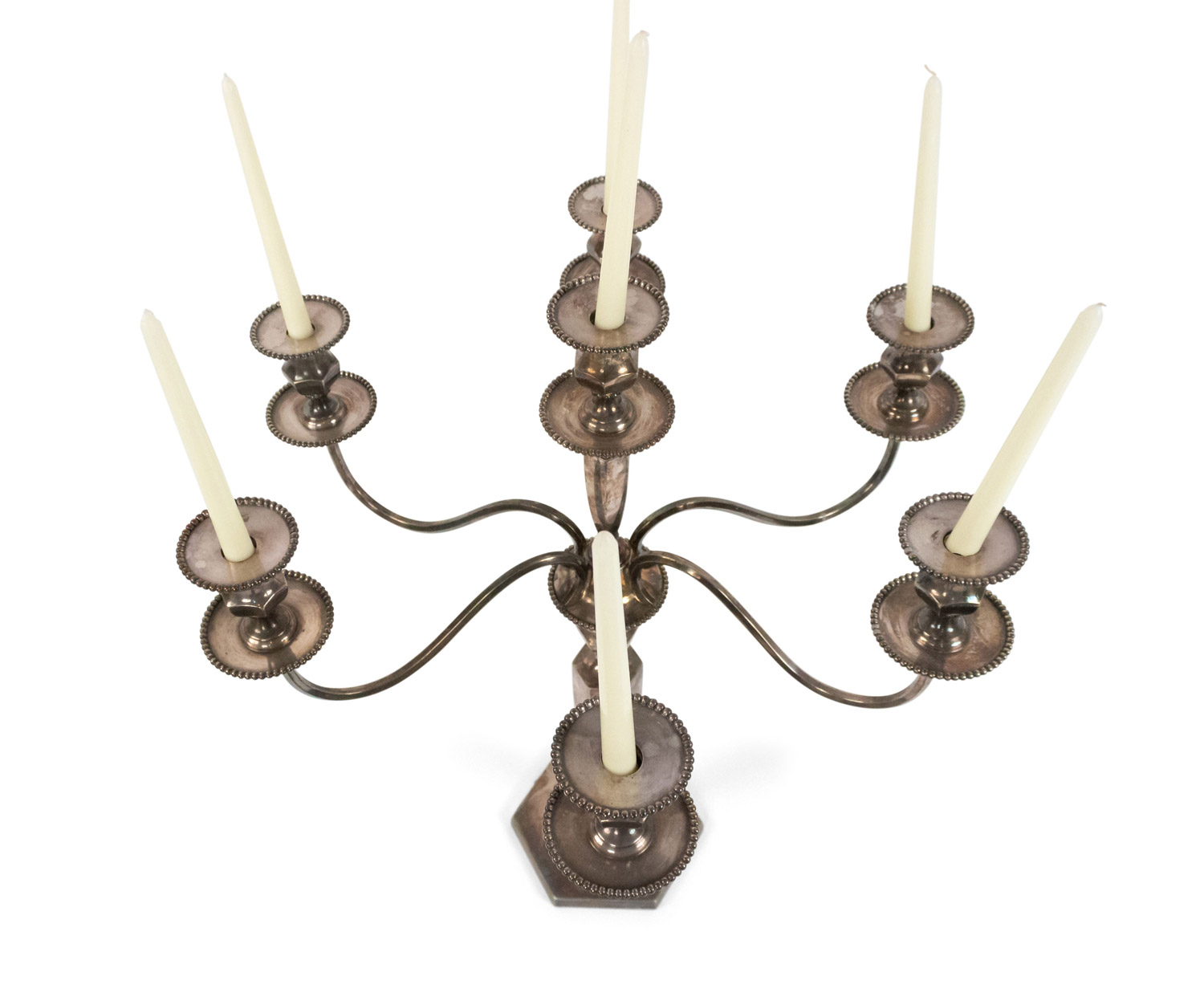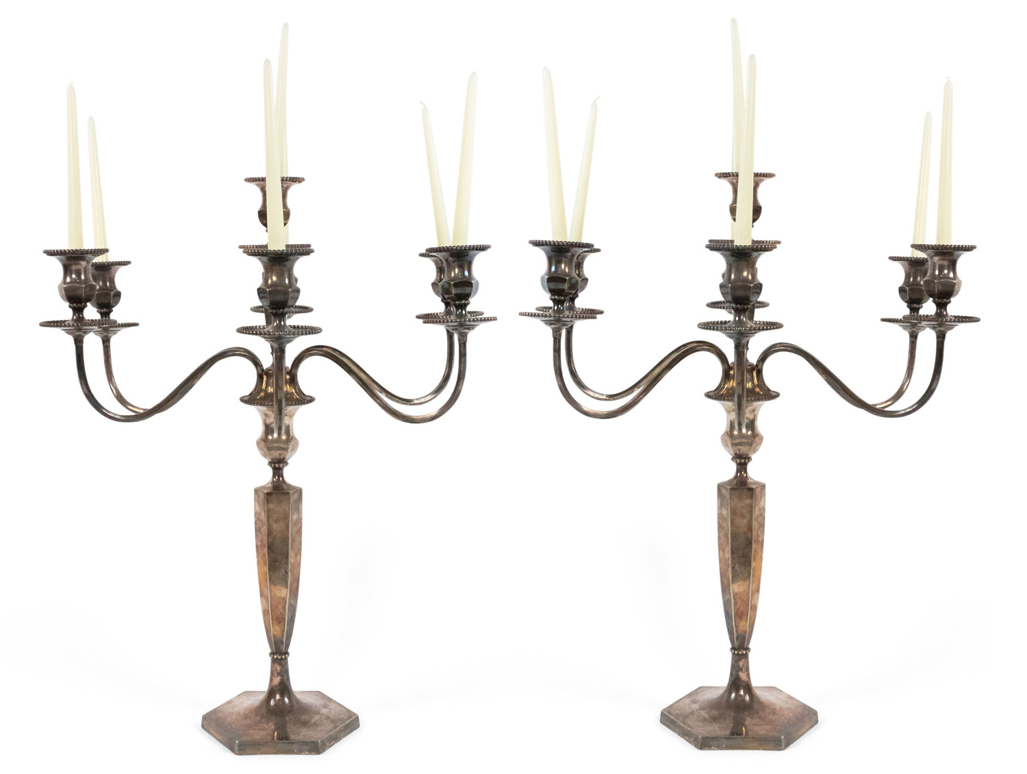 PAIR of English Georgian-style (19th Century) large silver plate 7 arm candelabras (Hallmark) (PRICED AS PAIR).