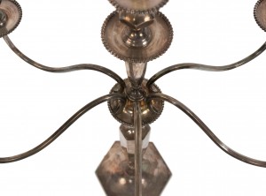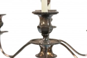 PAIR of English Georgian-style (19th Century) large silver plate 7 arm candelabras (Hallmark) (PRICED AS PAIR)