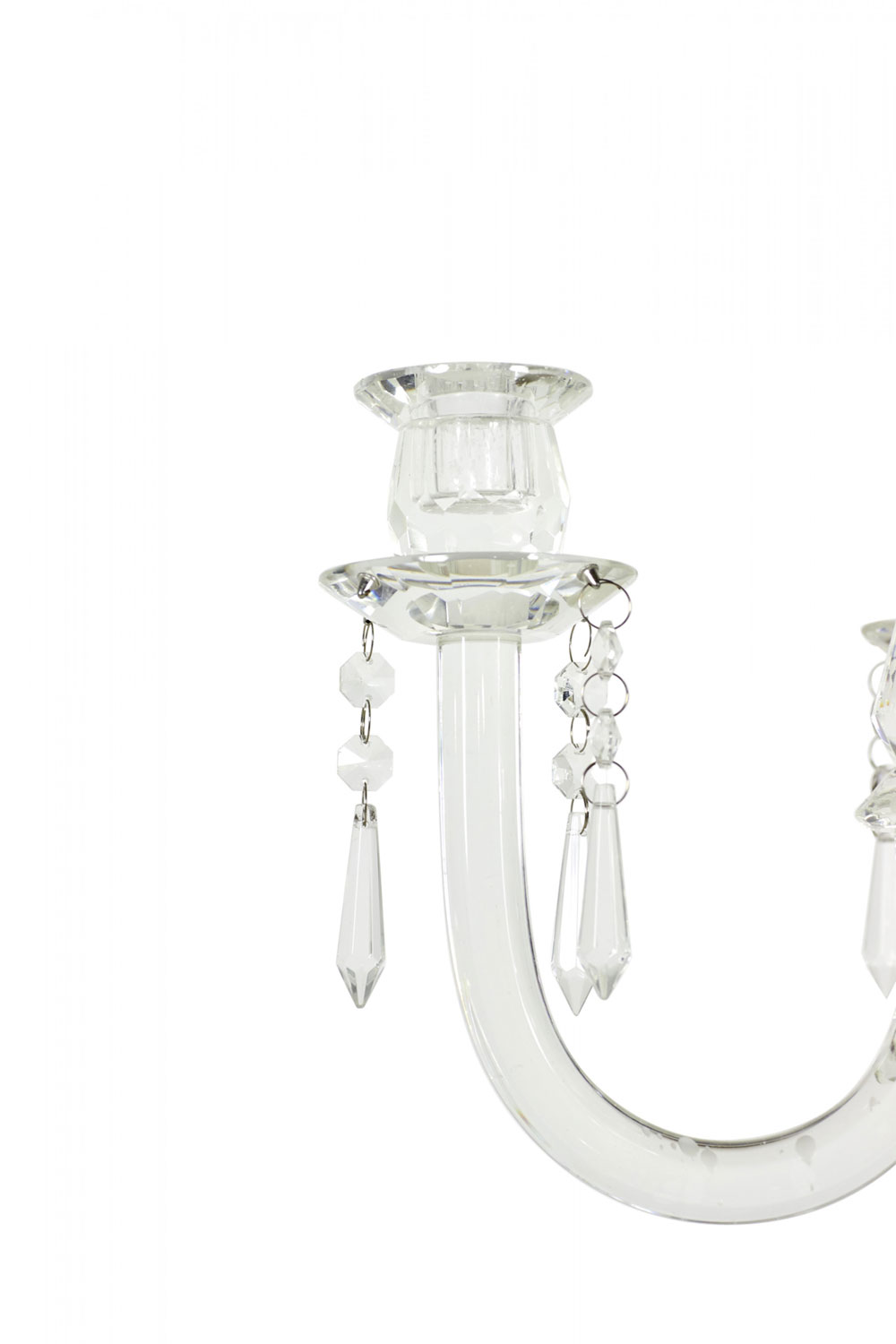 English Georgian Waterford-style (20th Century) crystal 5 arm candelabra with a faceted design..