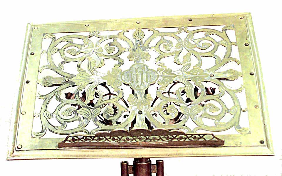 English Gothic Revival style (19th Cent) brass lectern/ music stand with filigree top and swirl center post.