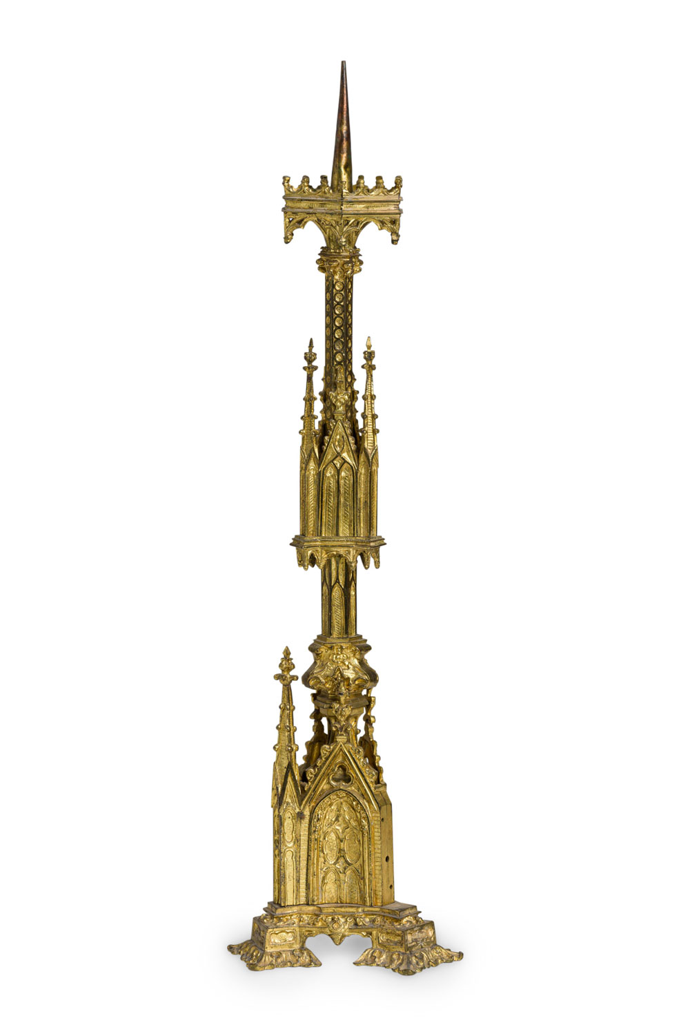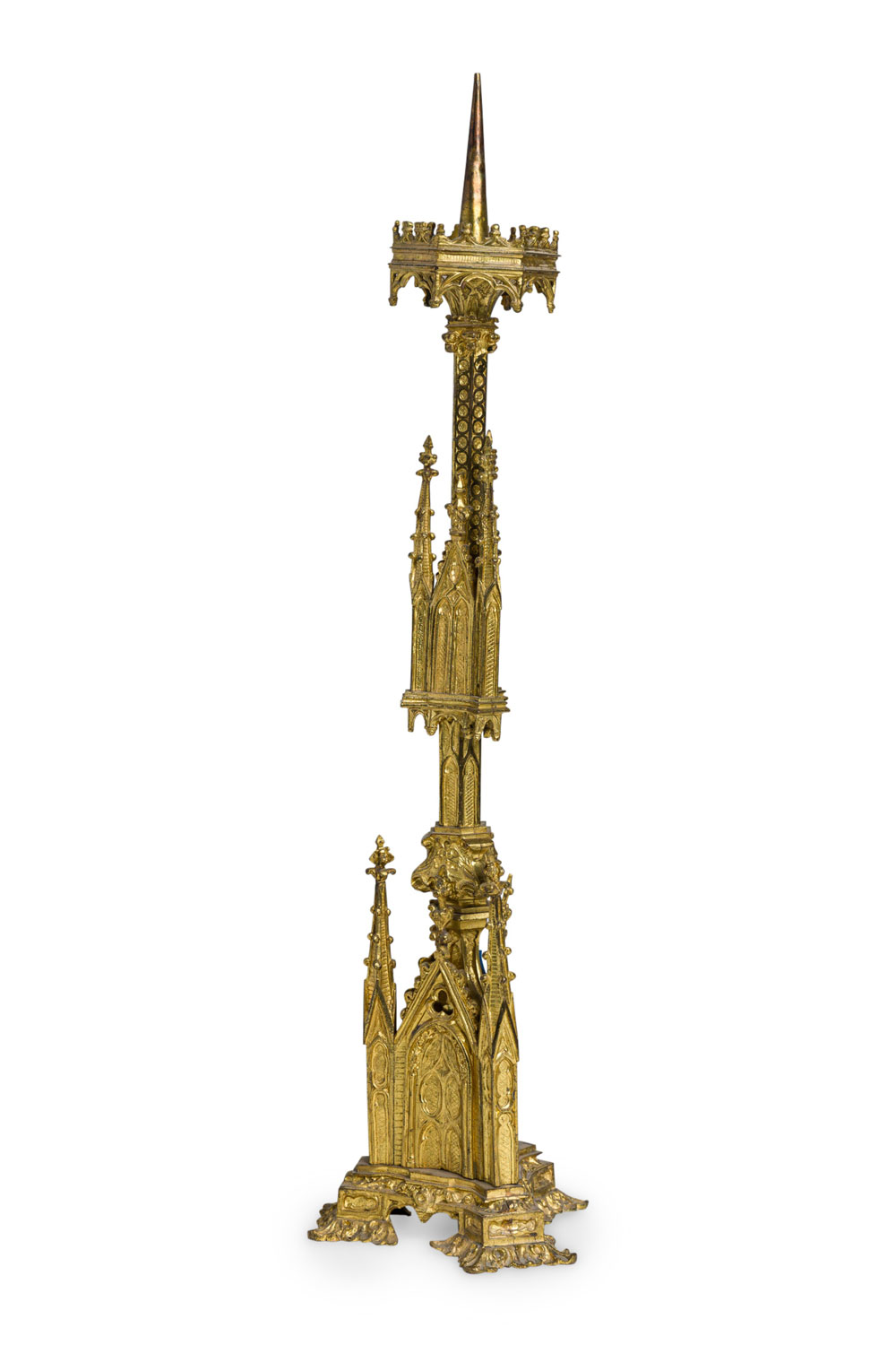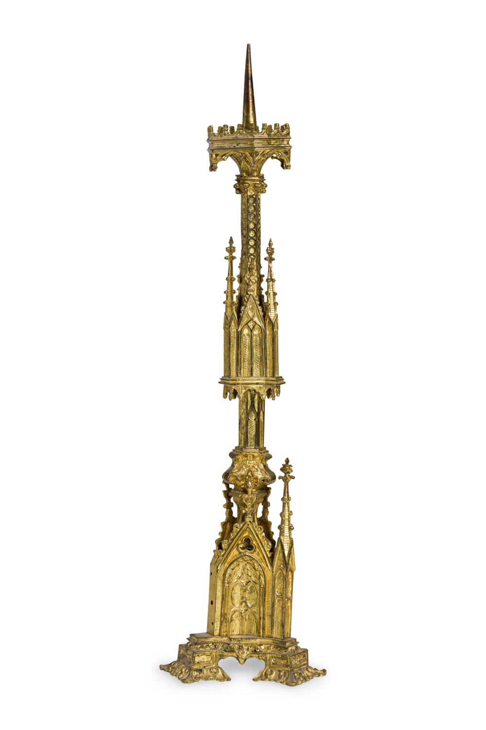 English Gothic Revival-style (19th Century) bronze dore altar stick.