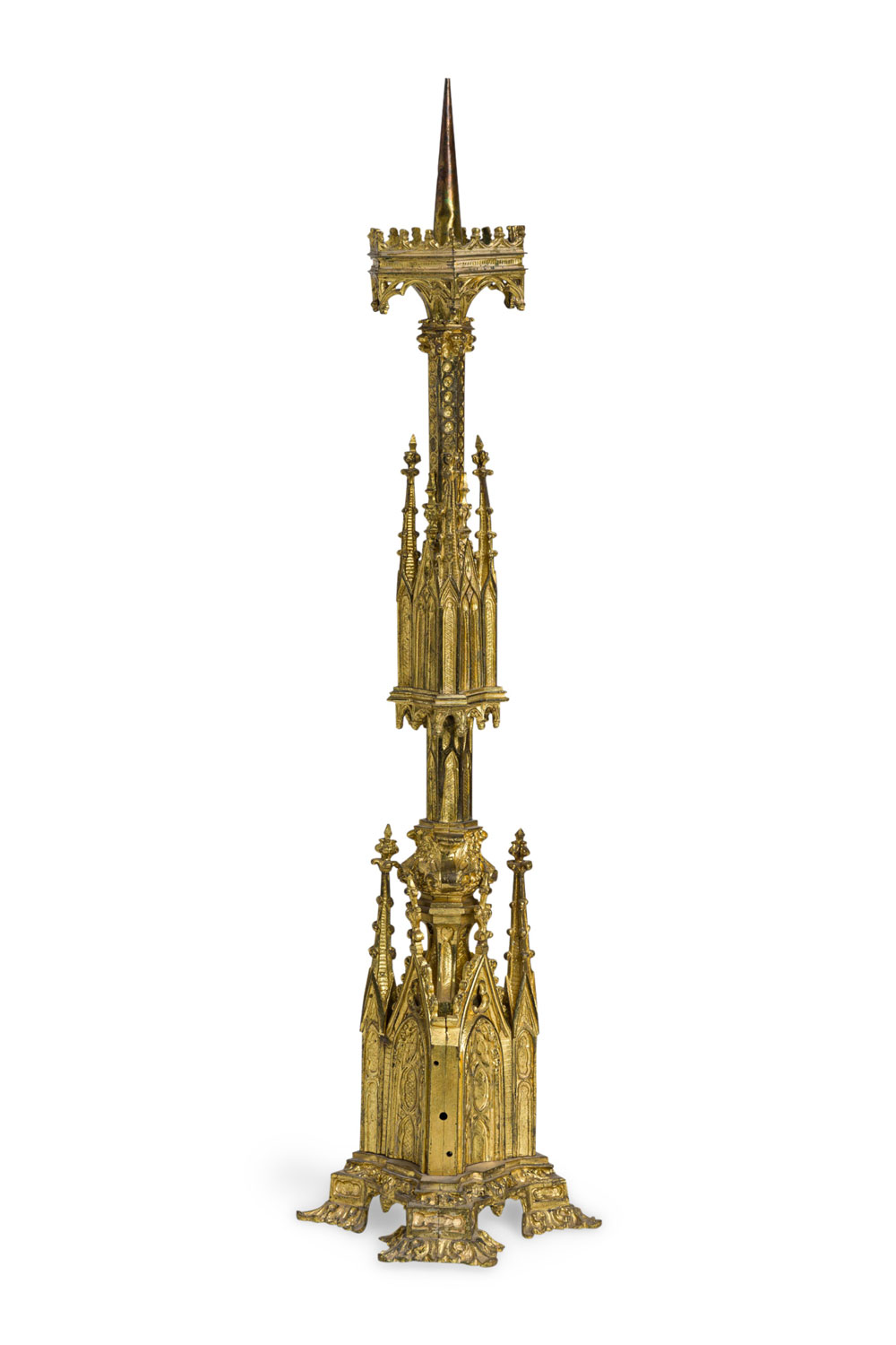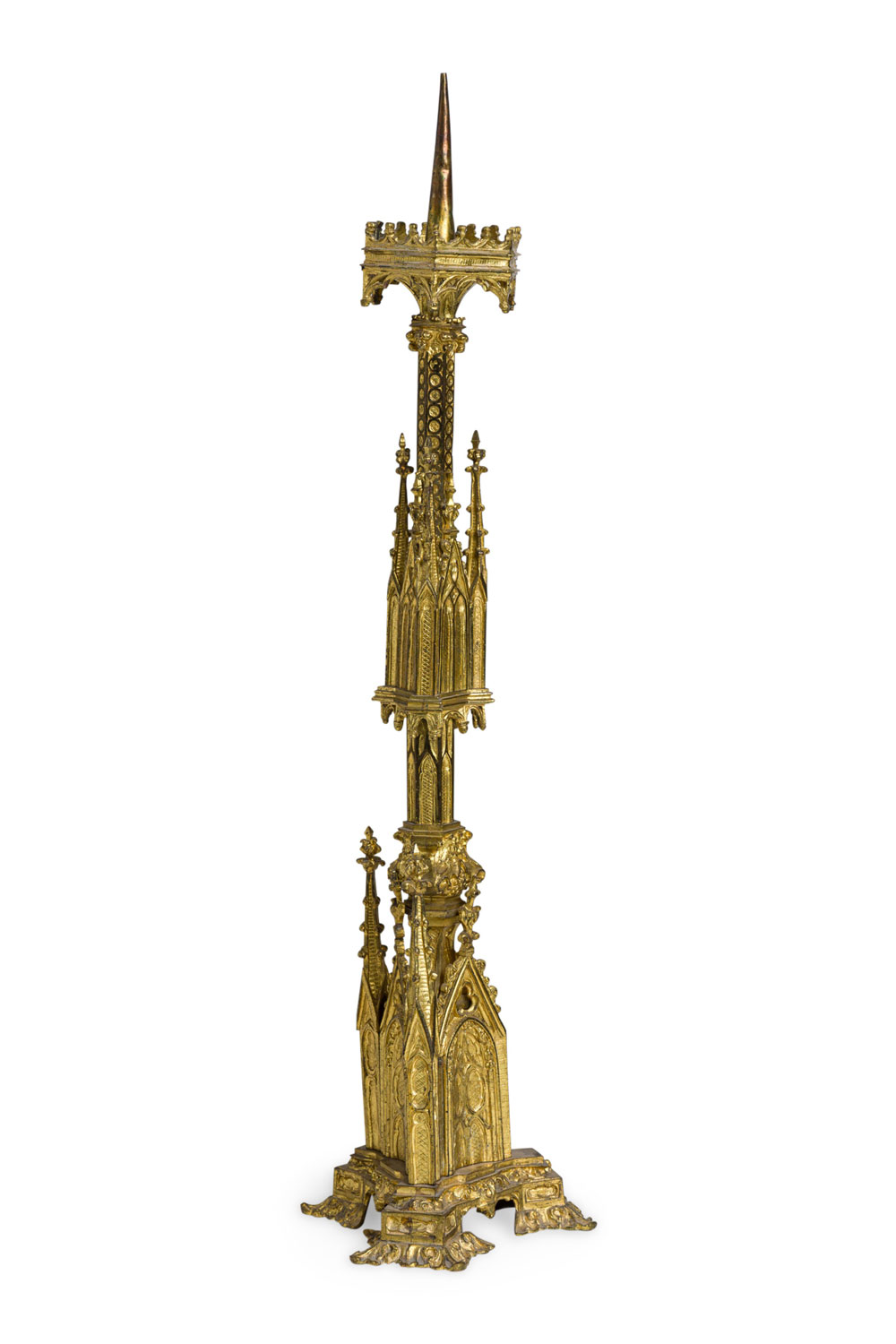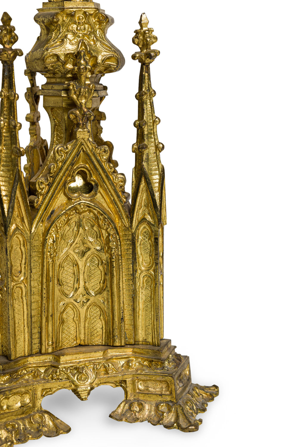 English Gothic Revival-style (19th Century) bronze dore altar stick