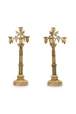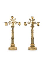 PAIR of English Gothic Revival-style (19th Century) bronze dore 3 arm candelabras with center arms. (PRICED AS PAIR).