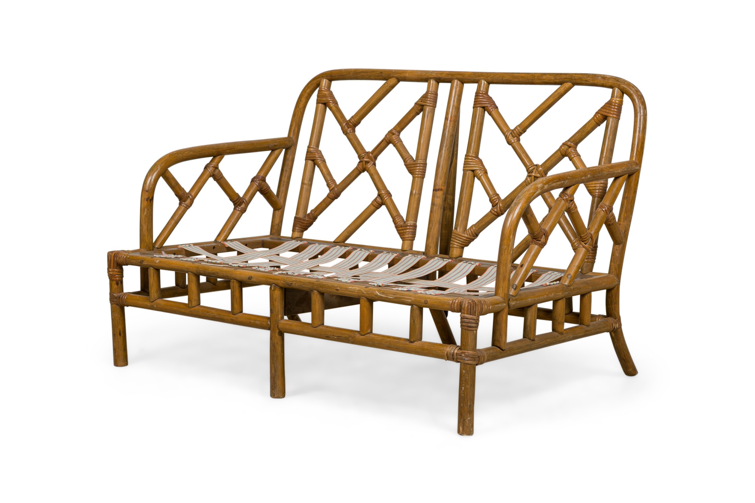 Mid-Century Bamboo loveseat with lattice design back