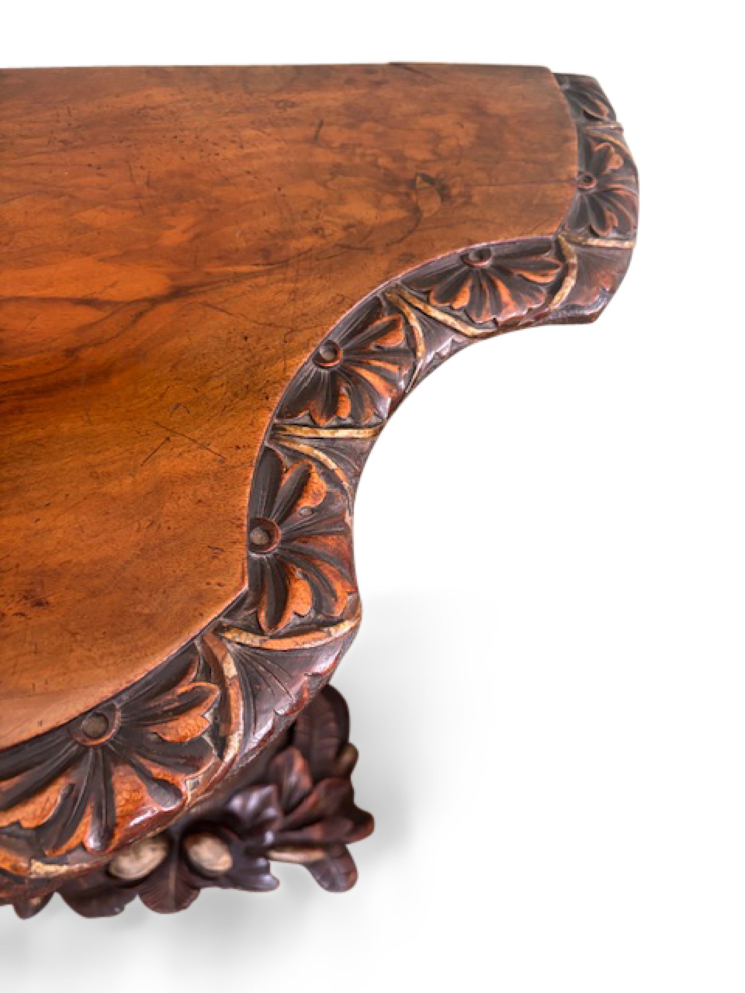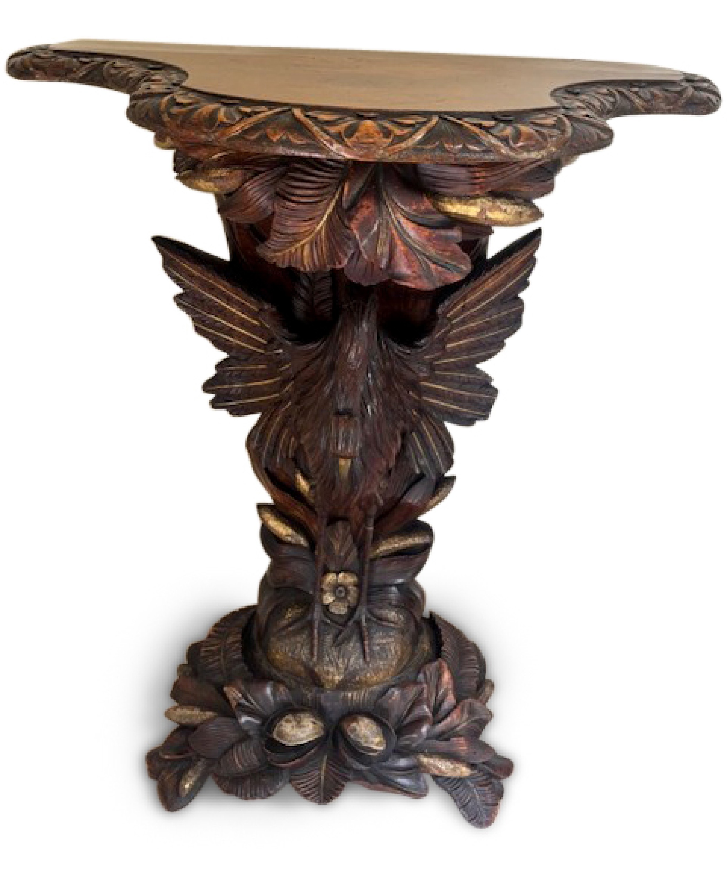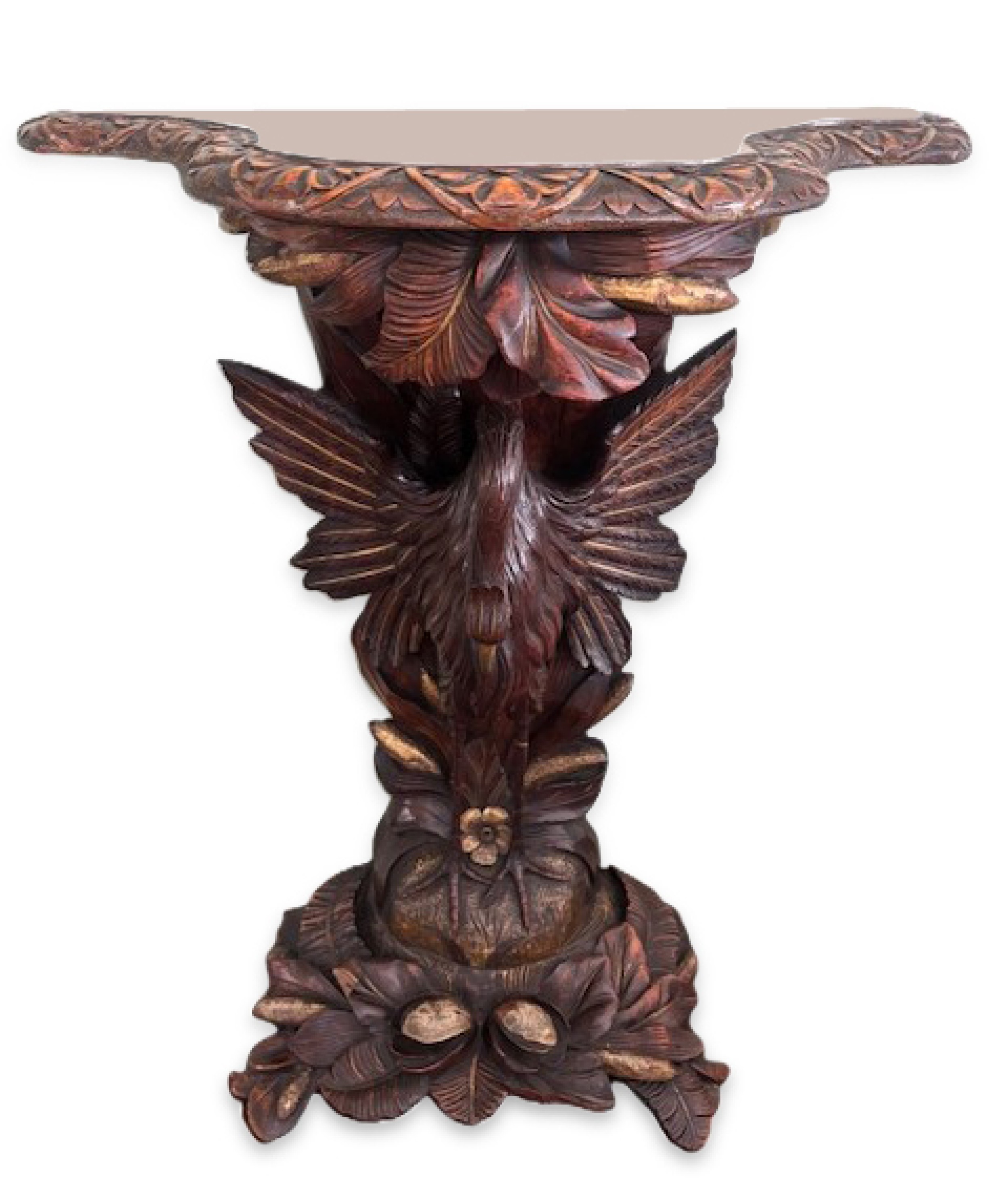 English Regency console with a carved bird & floral base over a shaped top