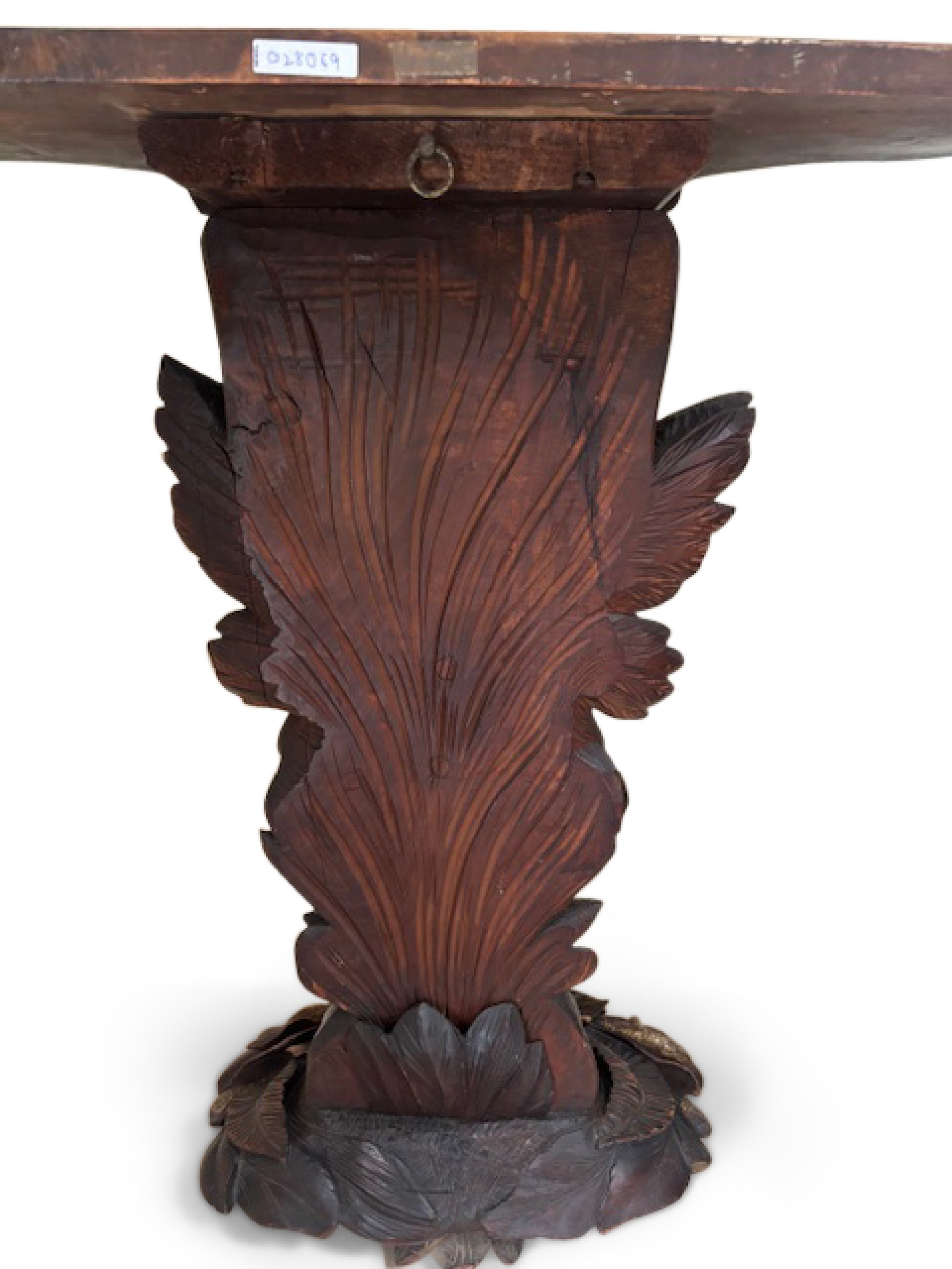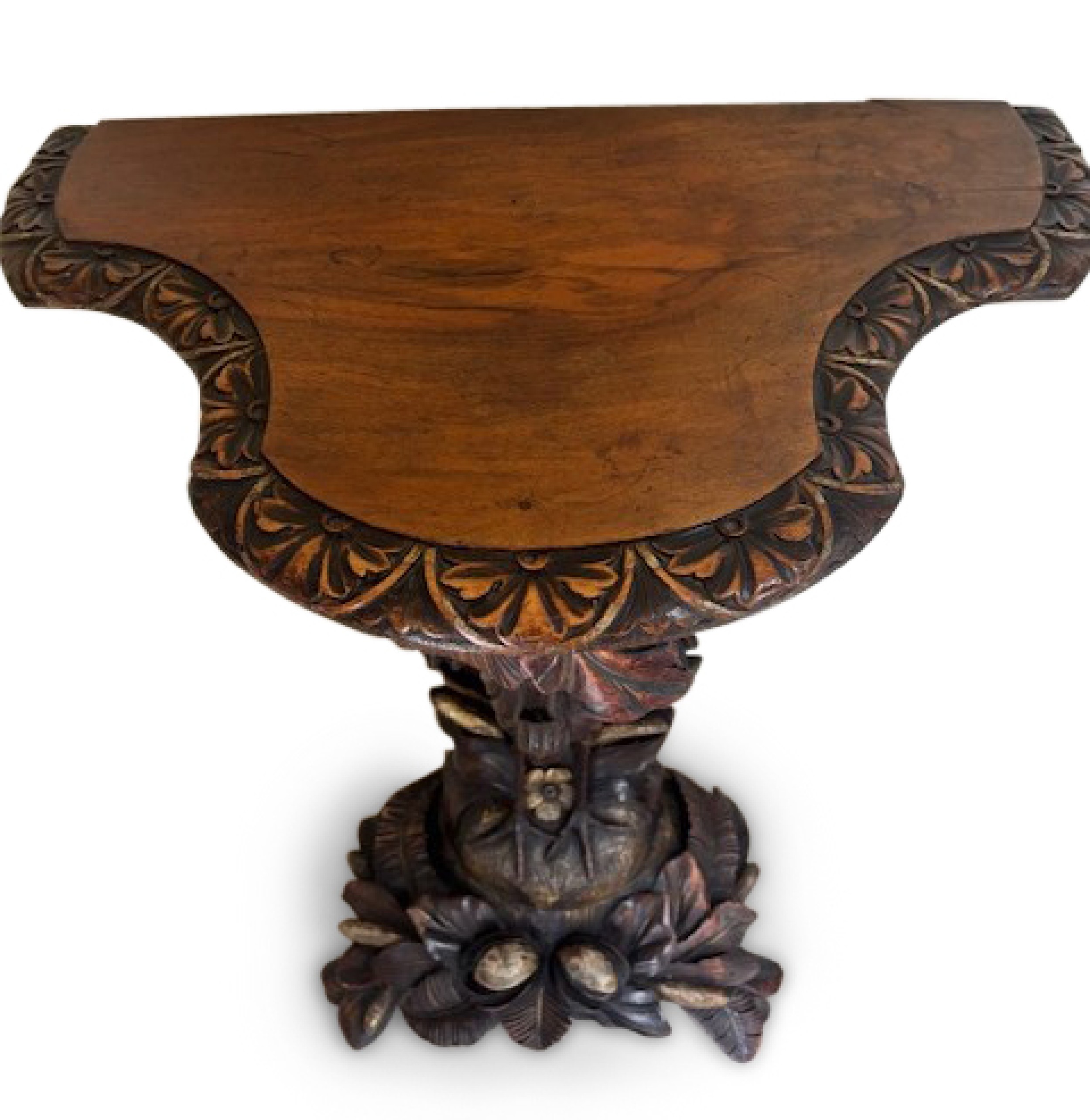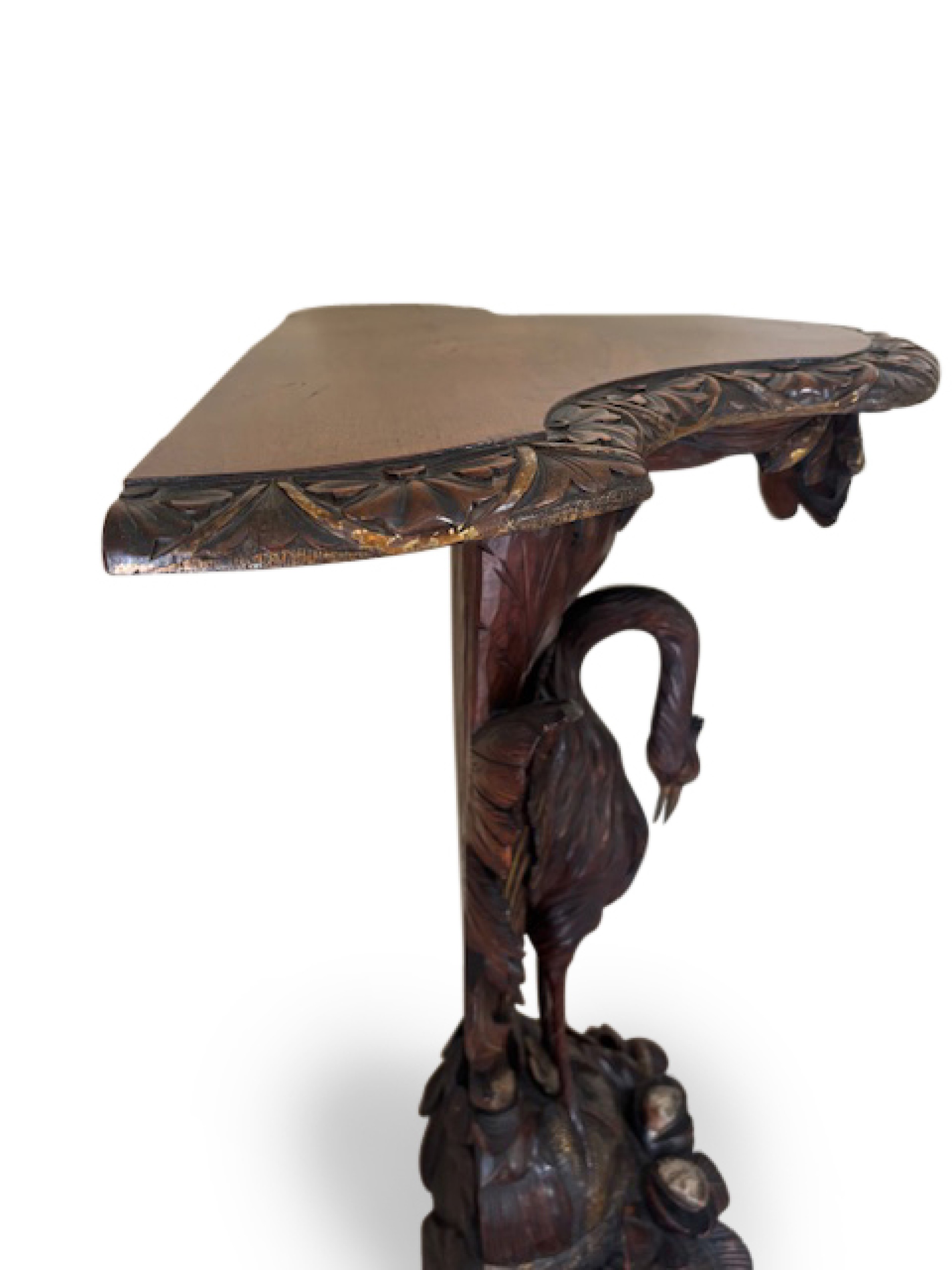 English Regency console with a carved bird & floral base over a shaped top