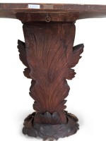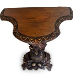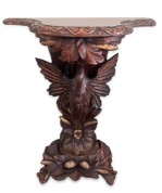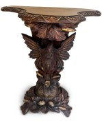 English Regency console with a carved bird & floral base over a shaped top.