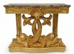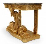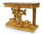 Style: English Materials & Techniques: Carved, gilt / giltwood, marble Category: Tables, Dining Room Condition: some wear and loses to gold finish