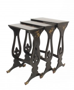 Set of 3 English Regency Lacquered Chinoiserie Nest of Tables