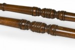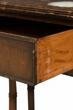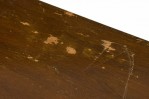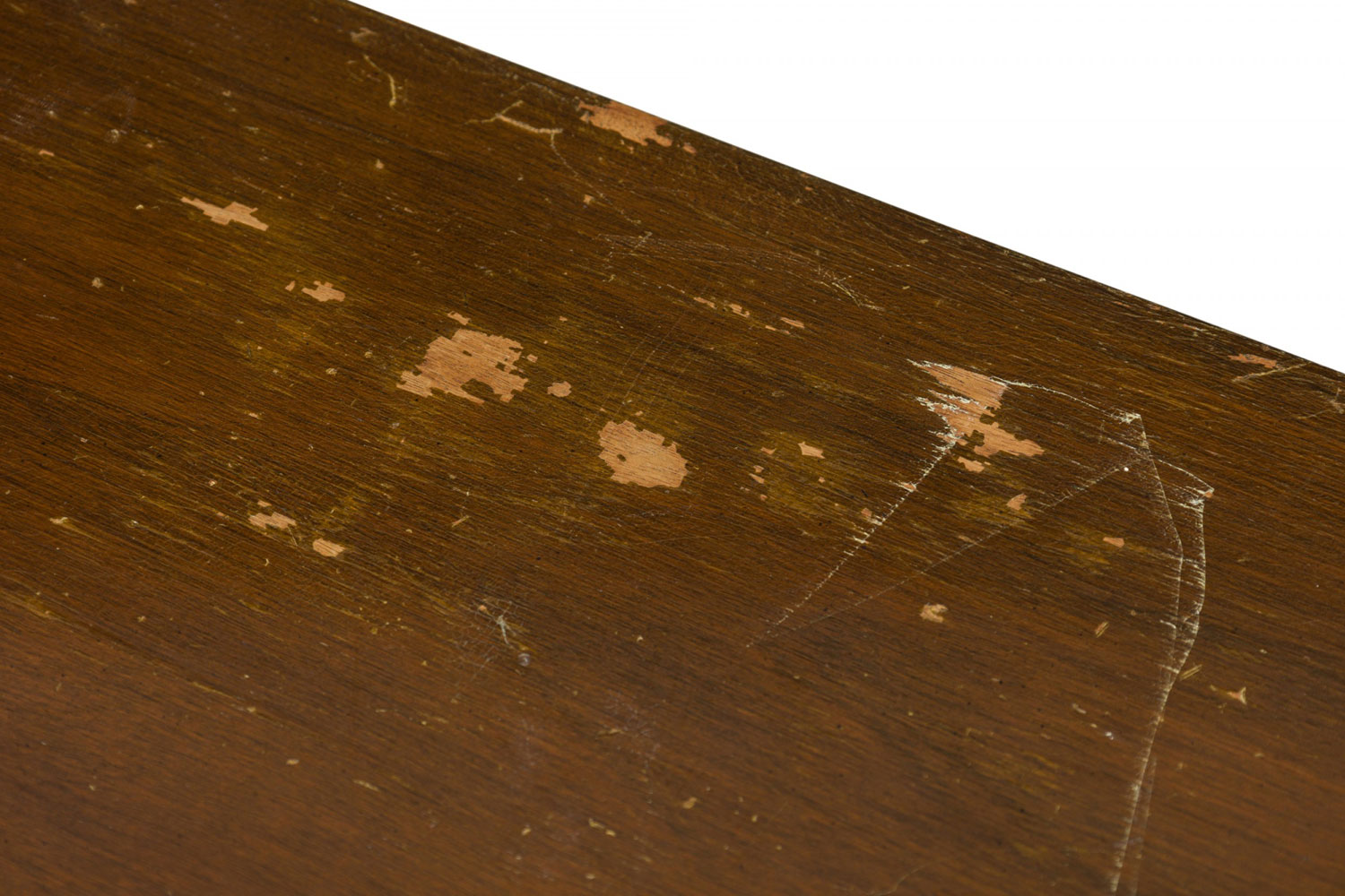 Style: English Materials & Techniques: Brass, mahogany, metal, wood Category: Tables, Dining Room Condition: 60" W with leaves extended. Significant wear to finish, especially the tabletop. Good; Wear consistent with age and use