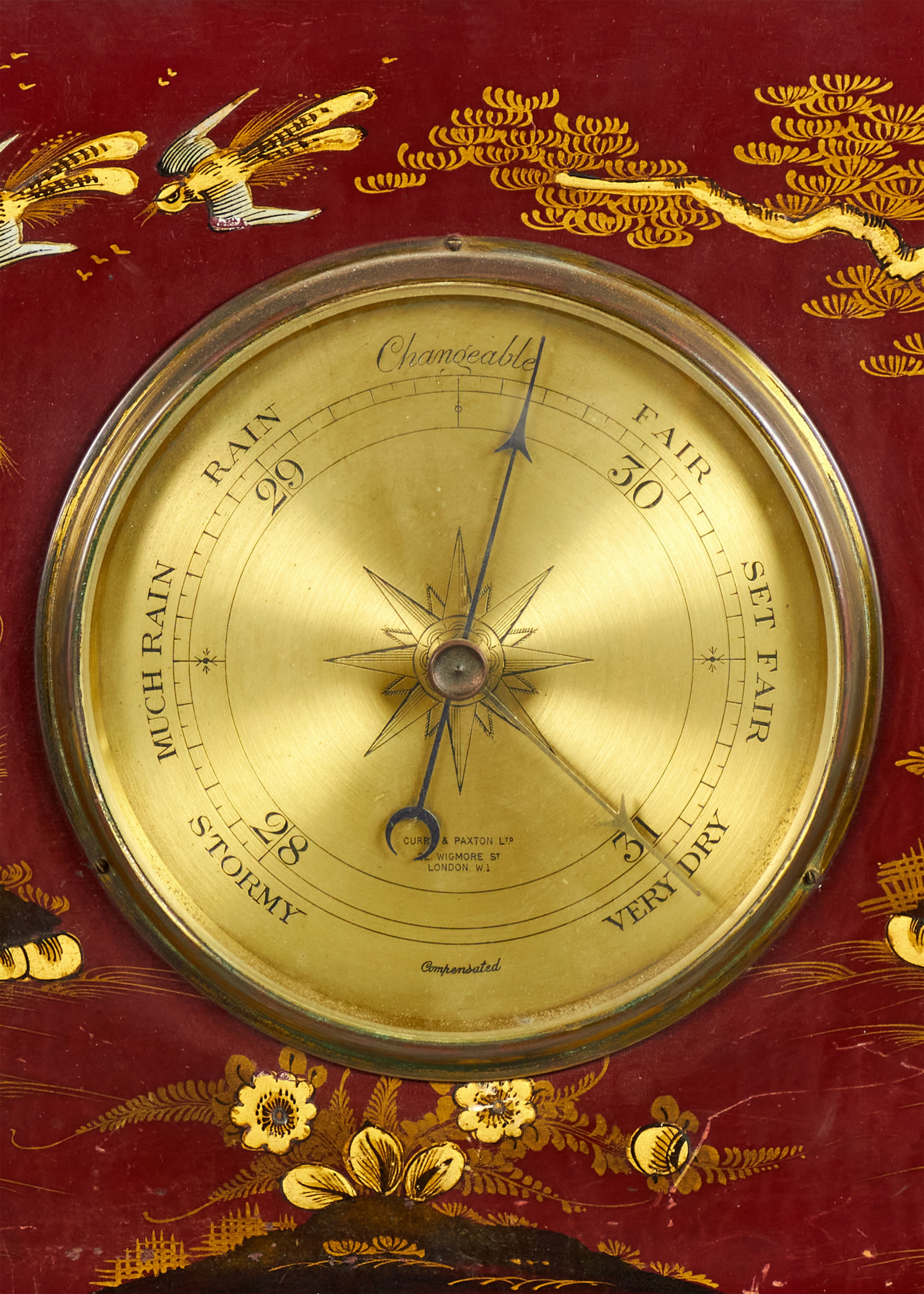 English Regency Red Lacquer Barometer