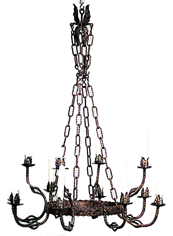 English Renaissance Style Gilt Iron Chandelier