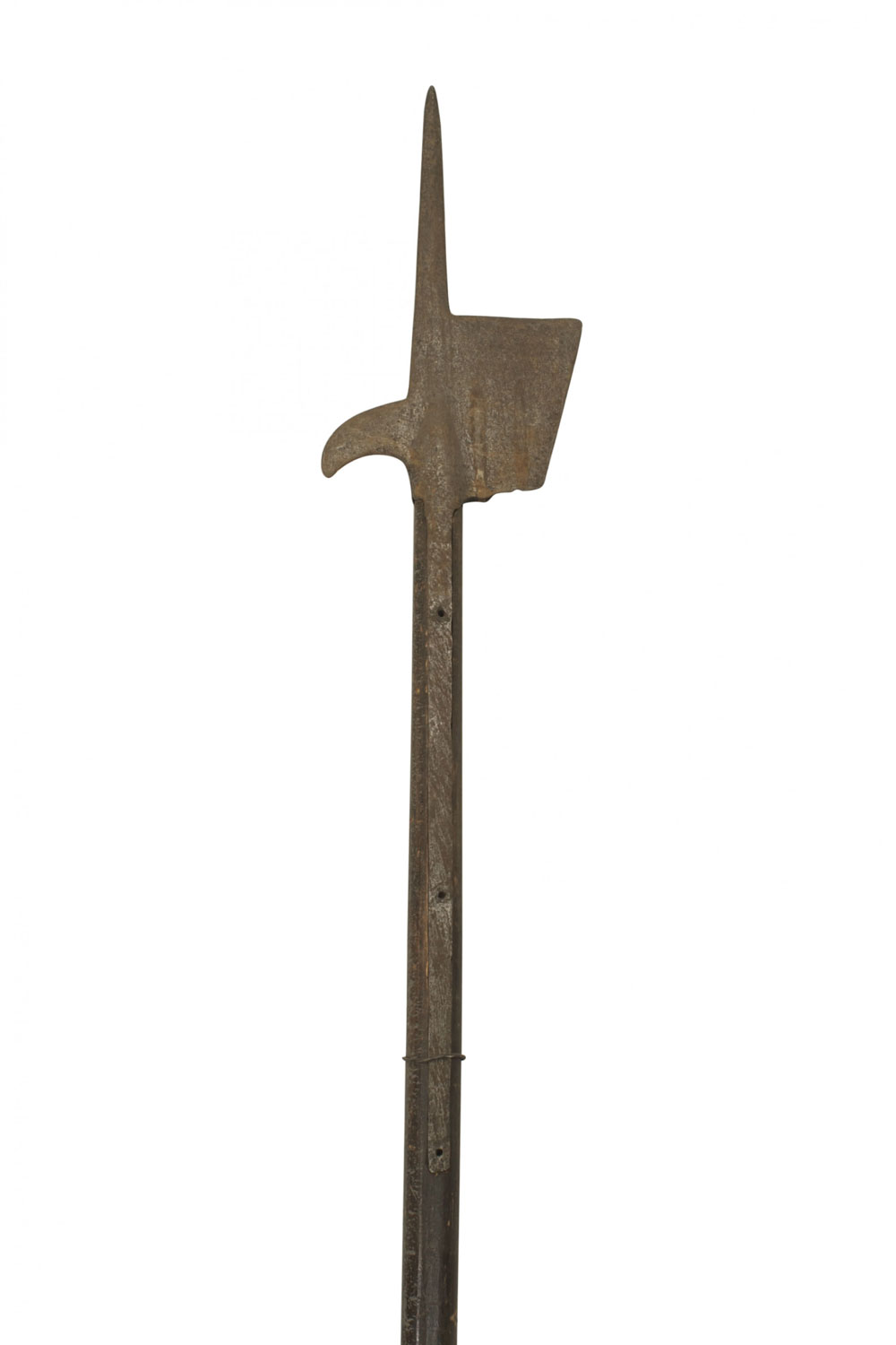 English Renaissance-style halberd spear with wood shaft and 33 ½ inch iron ax blade..