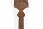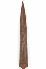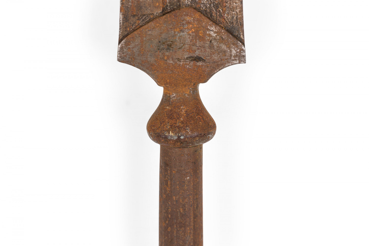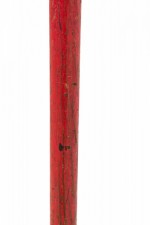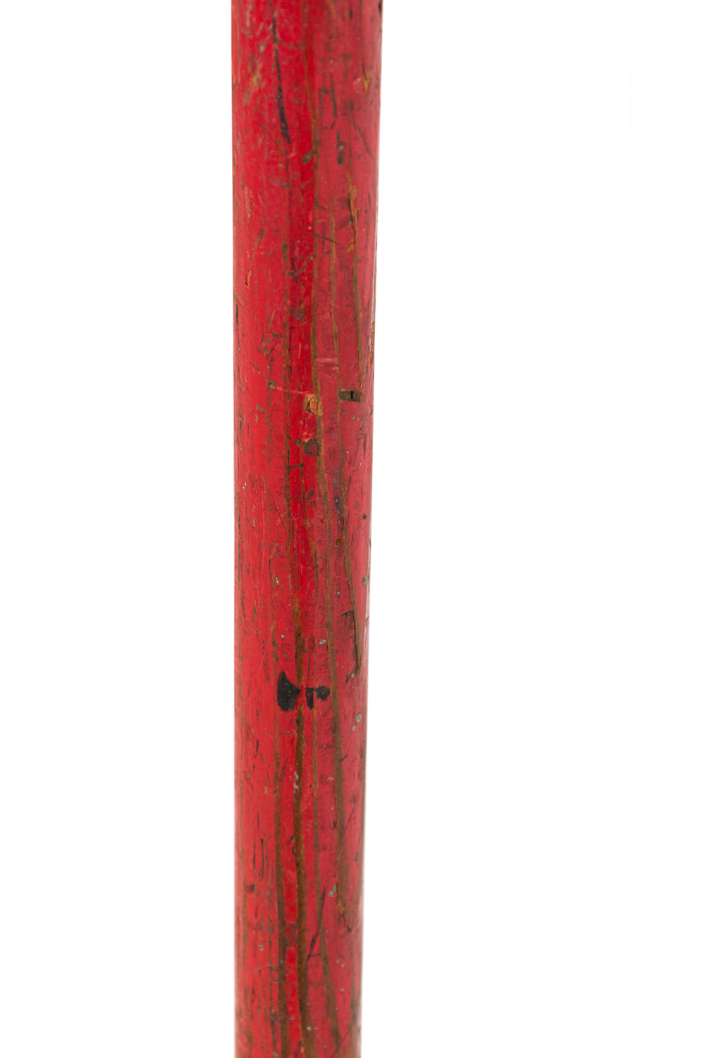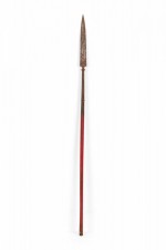 English Renaissance-style short spear with red painted wooden shaft and 17½-inch simple etched iron blade.