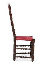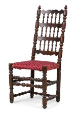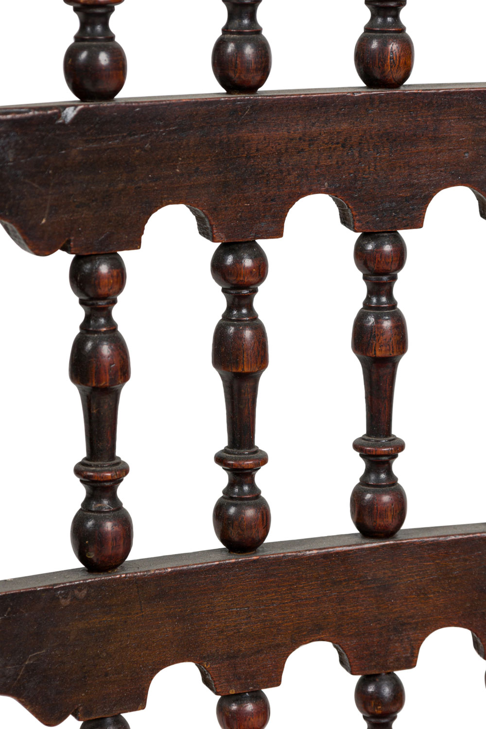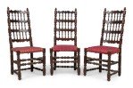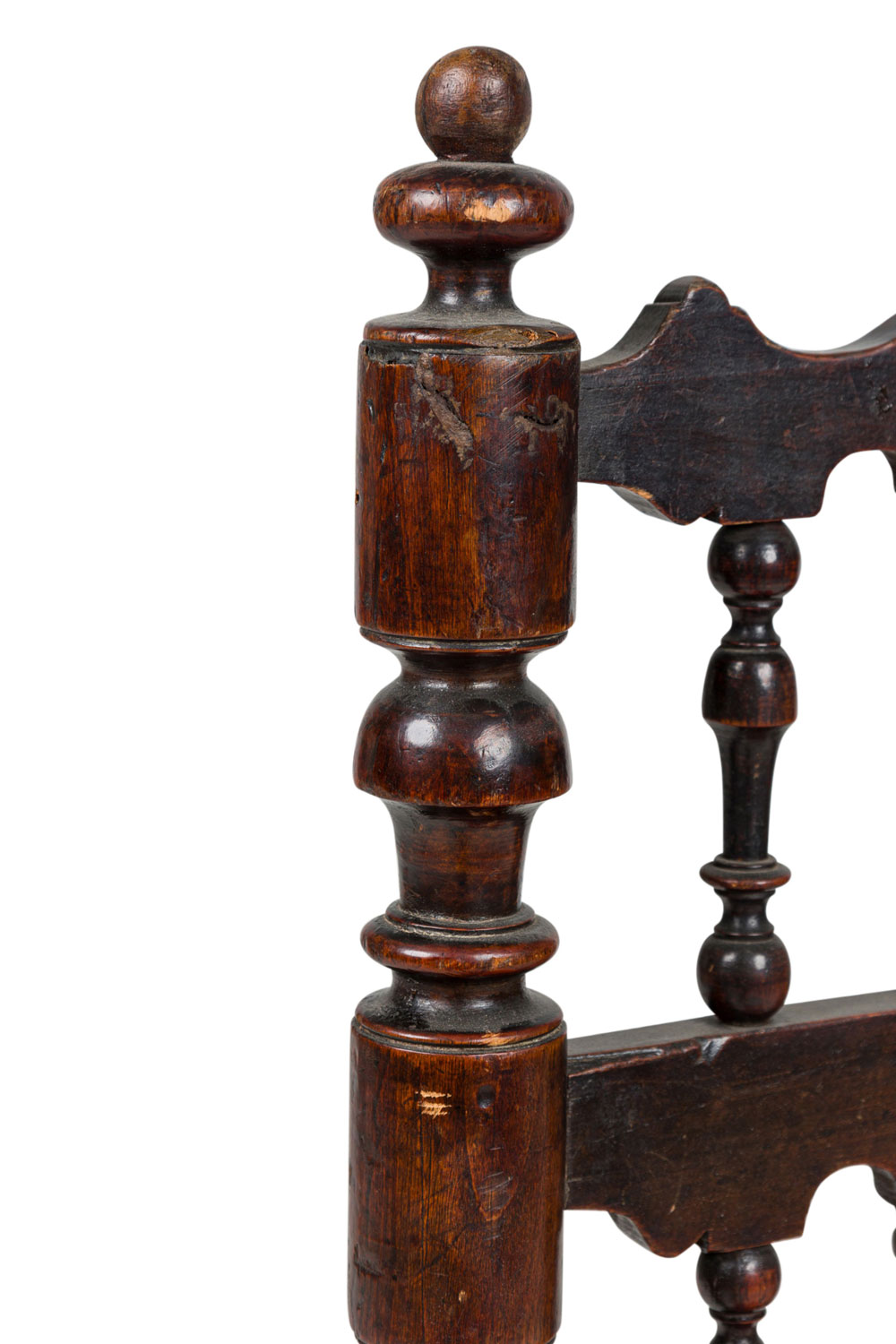 3 English Renaissance style (17th Cent) walnut 3 tier spindle back side chairs with upholstered seat. (PRICED EACH)