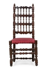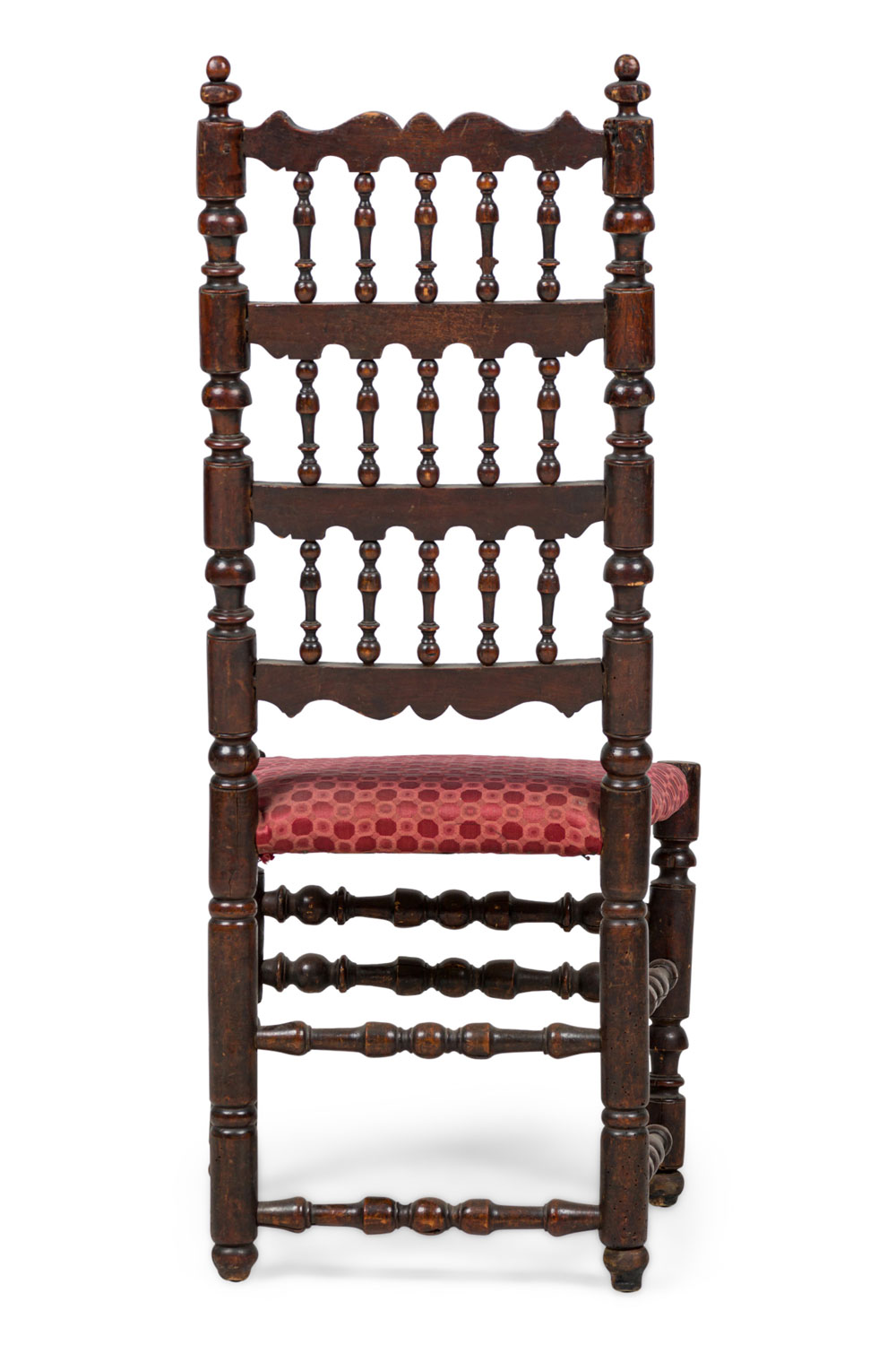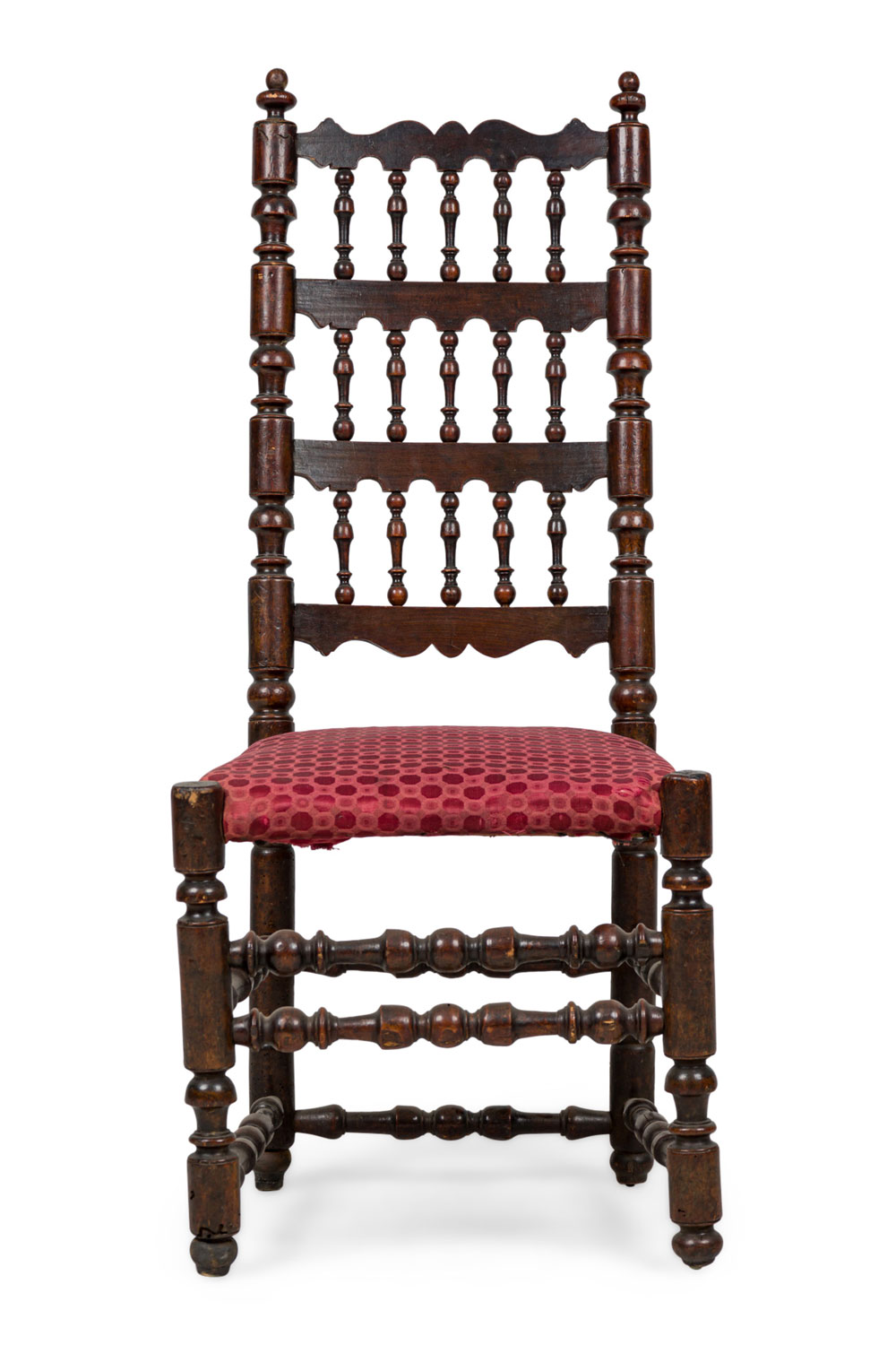 3 English Renaissance style (17th Cent) walnut 3 tier spindle back side chairs with upholstered seat. (PRICED EACH).