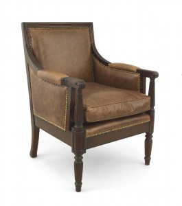 Style: English Materials & Techniques: Mahogany, leather, carved Category: Seating