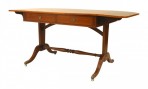 English Sheraton style (19/20th Century) mahogany davenport table with drop sides and inlaid border with 2 drawers. (Leaves open 59.5 width / depth 28.5 ,Leaves closed 37.5 width / depth 28.5.)