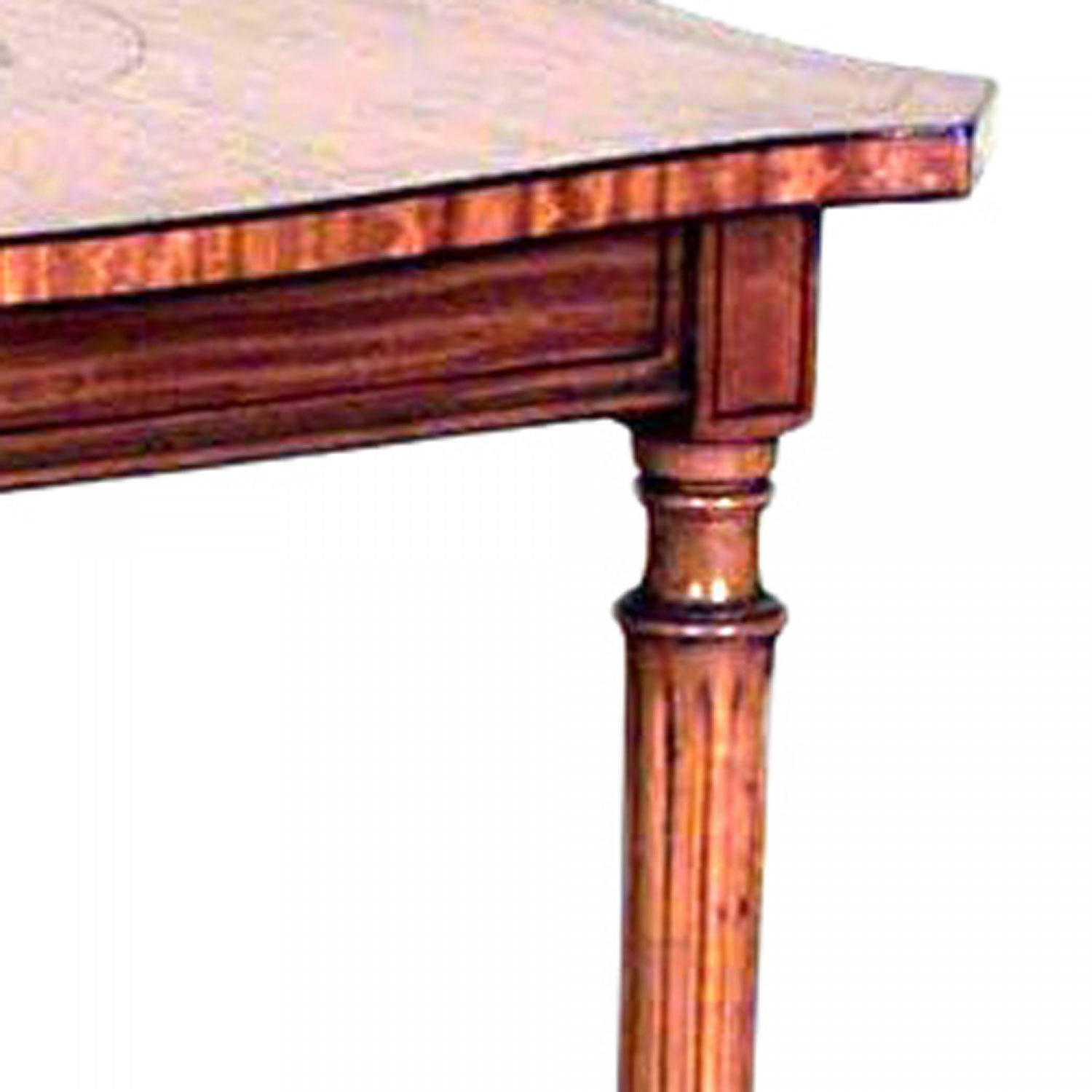English Sheraton-style (19th Century) shaped square satinwood end table with fluted legs and stretcher with inlaid top.