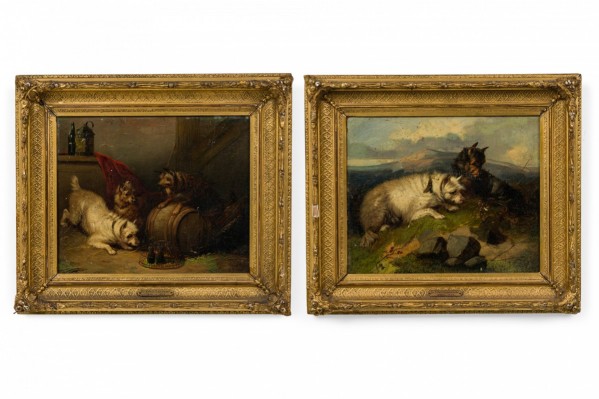 Pair of English Victorian Dog Paintings by EDWIN LANDSEER