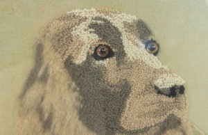 English Victorian Country style (19/20th Century) oak framed embroidery of English setter dog.