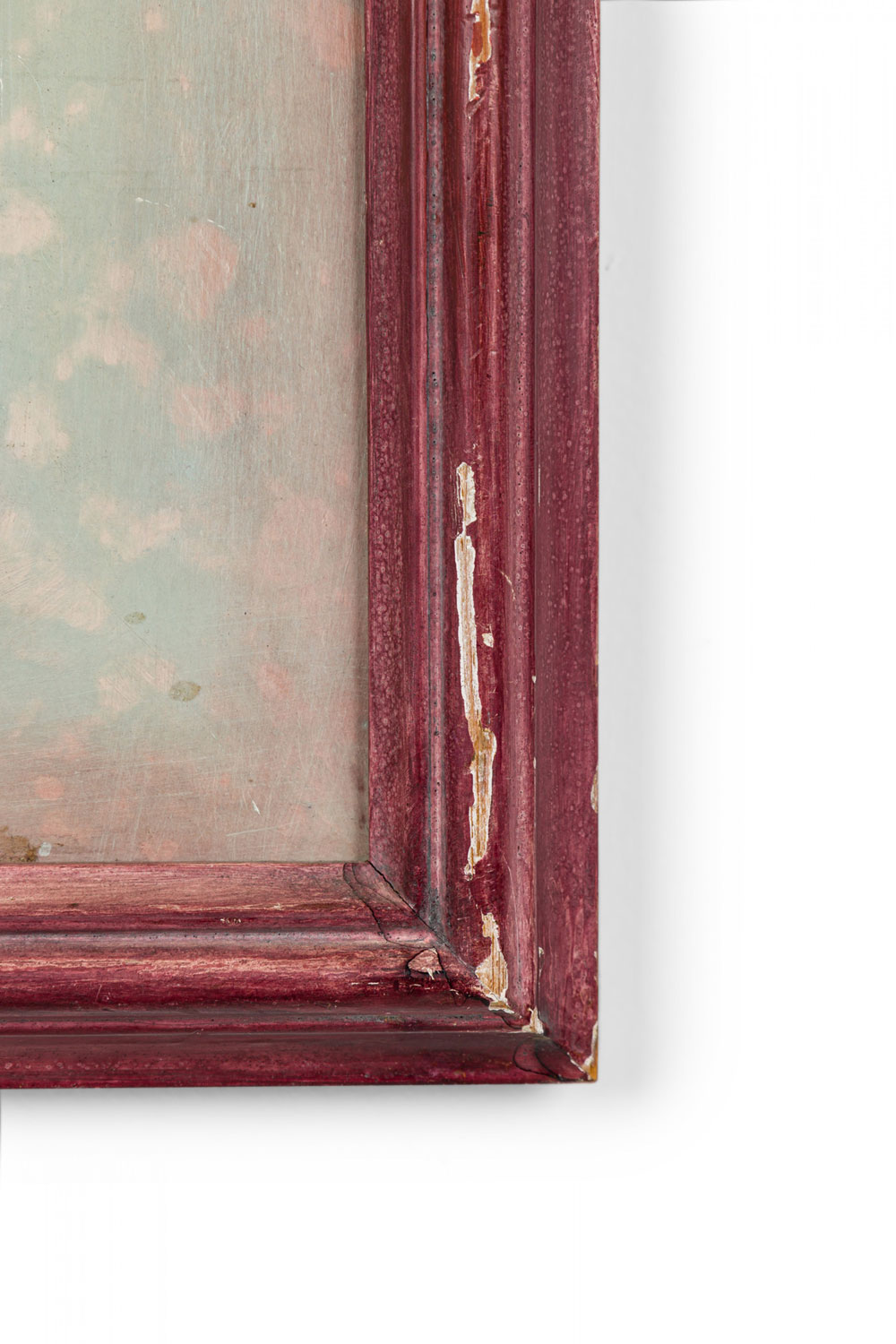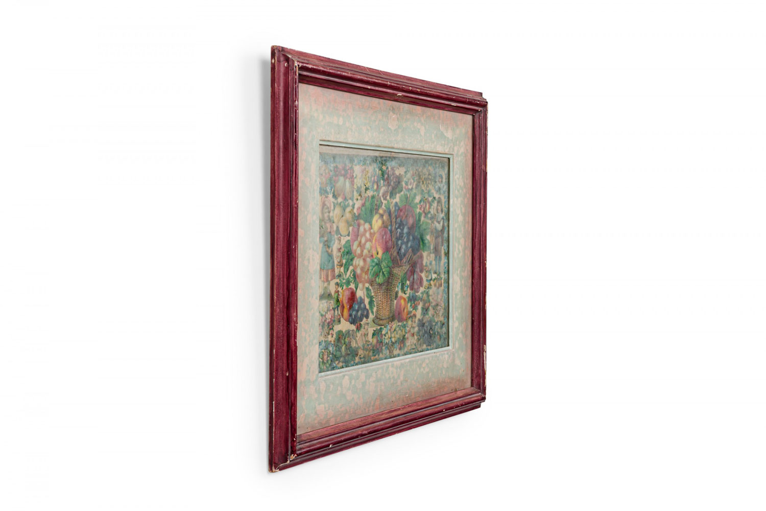 English Victorian red framed decoupage collage print picture of figures and fruit..