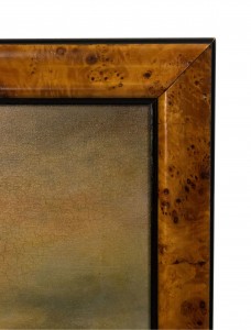 English Victorian style burl walnut framed oil painting of jockey on horse.