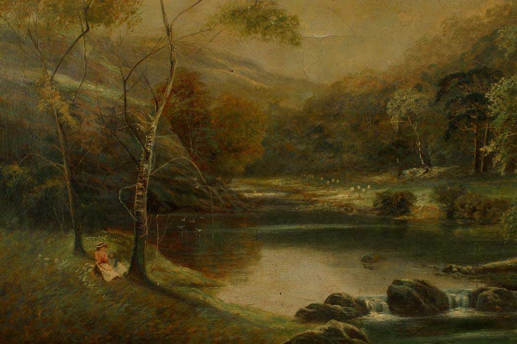 English Victorian Landscape of Girls by a Stream