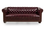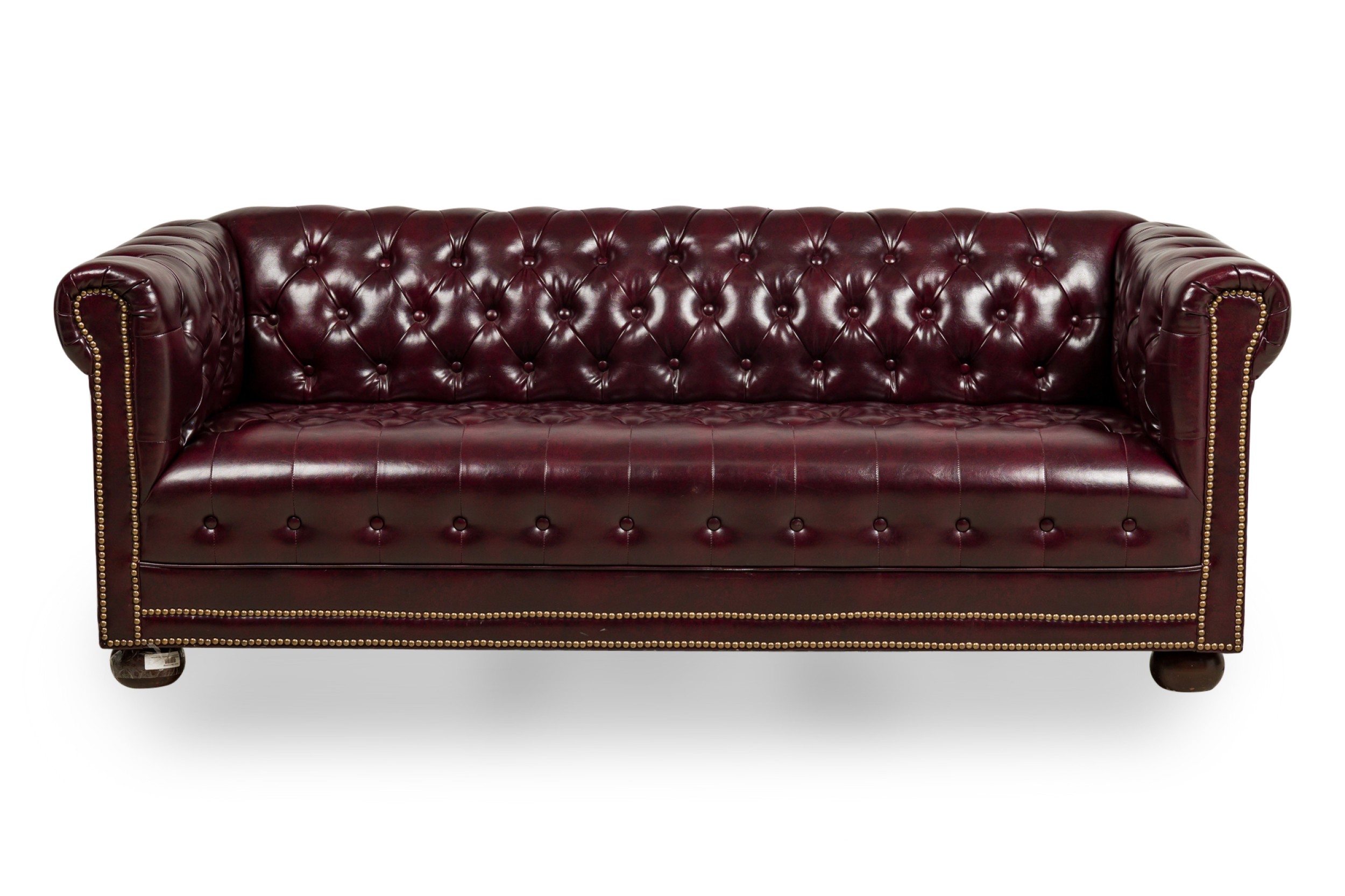 English Victorian Chesterfield Style Oxblood Tufted Sofa.