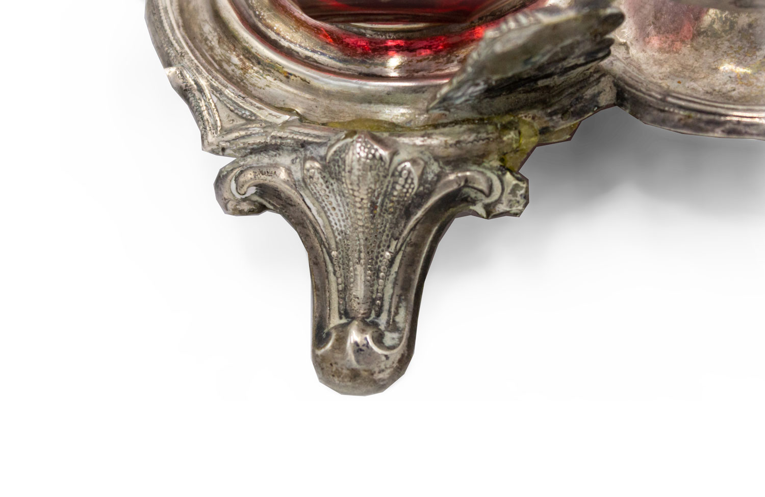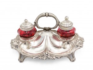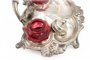 English Victorian Silver and Cranberry Glass Inkwell