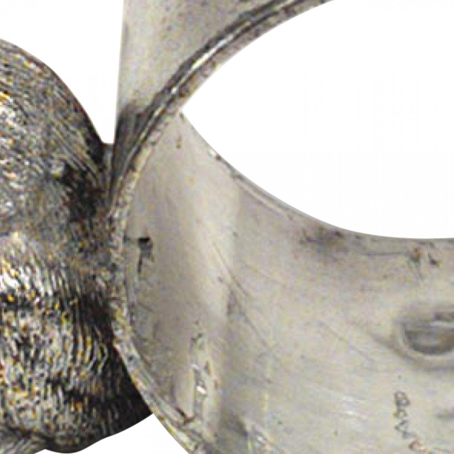 English Victorian silver plate napkin ring with etched floral design and seated cat figure