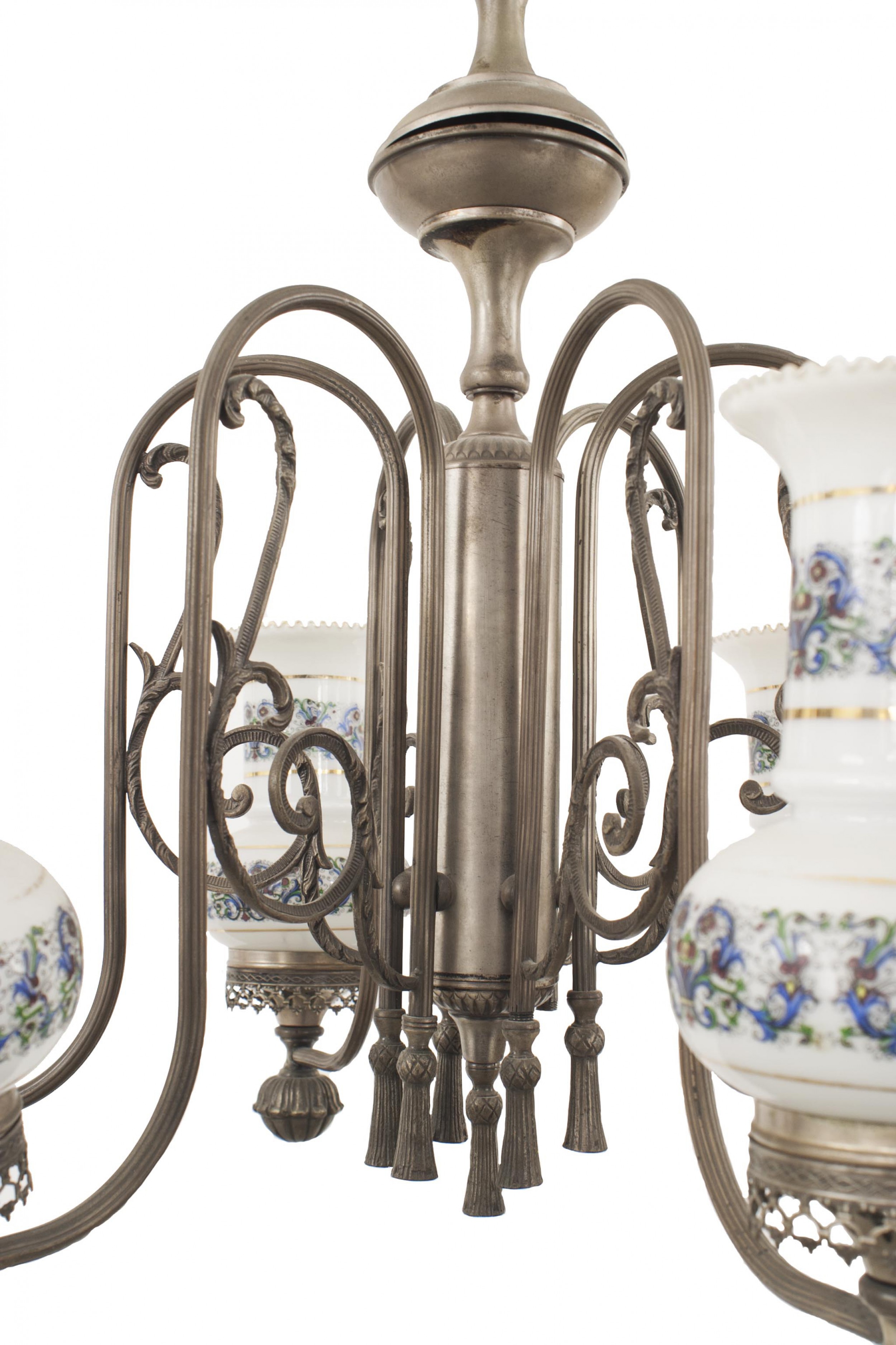 English Victorian Style Pewter Chandelier with Hurricane Shades