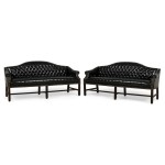 PAIR of English Victorian Style Tufted Camelback Sofa (PRICED EACH).