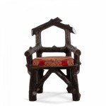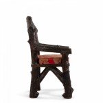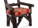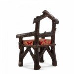 English Victorian Rustic style glazed brown terra cotta arm chair with faux twig design with open pediment shaped back.
