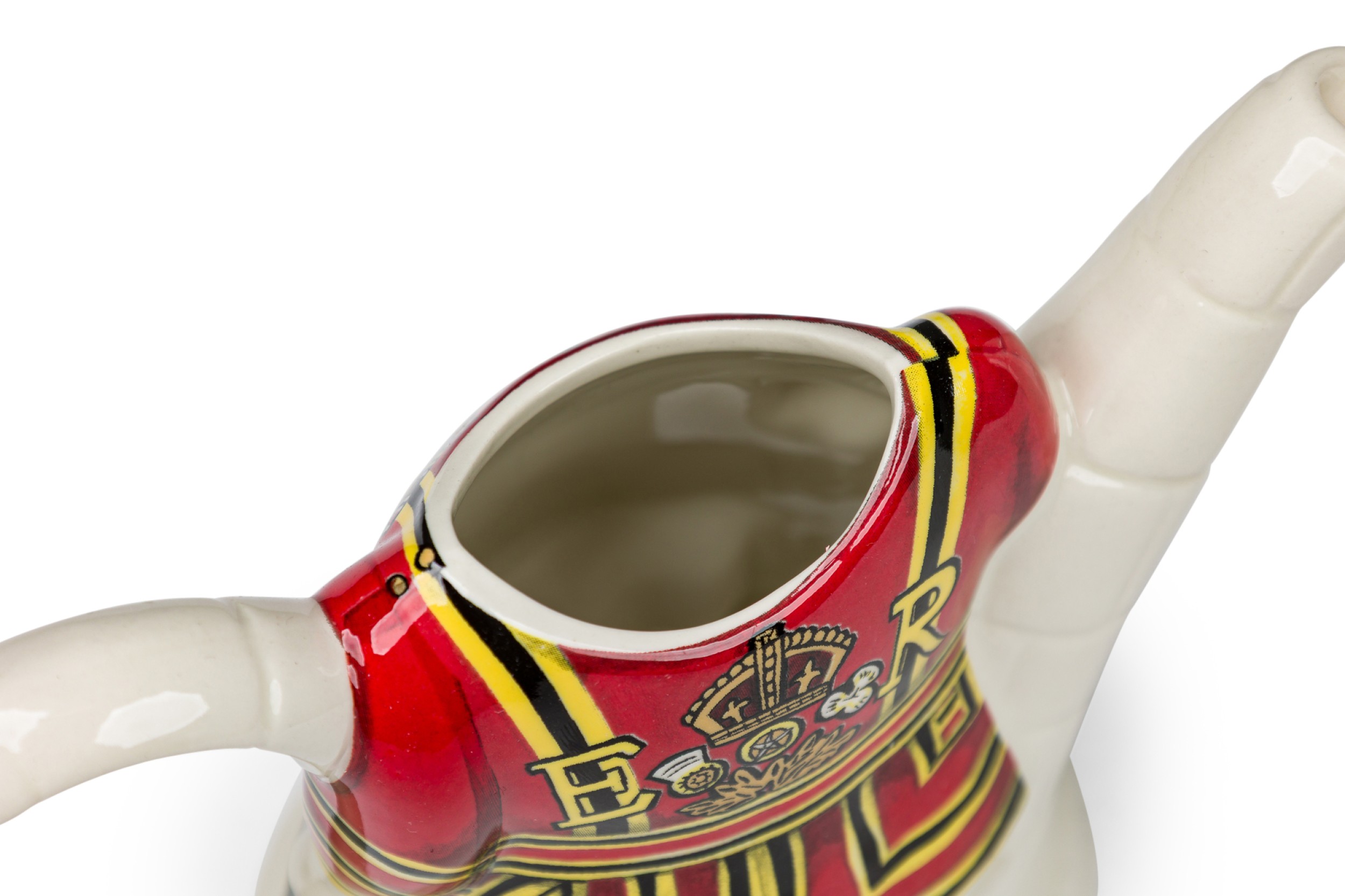 English Vintage teapot with a yeoman dressed in traditional red and yellow trimmed cloths y on a circular base (James Sadler Yeoman Warder Thameside)