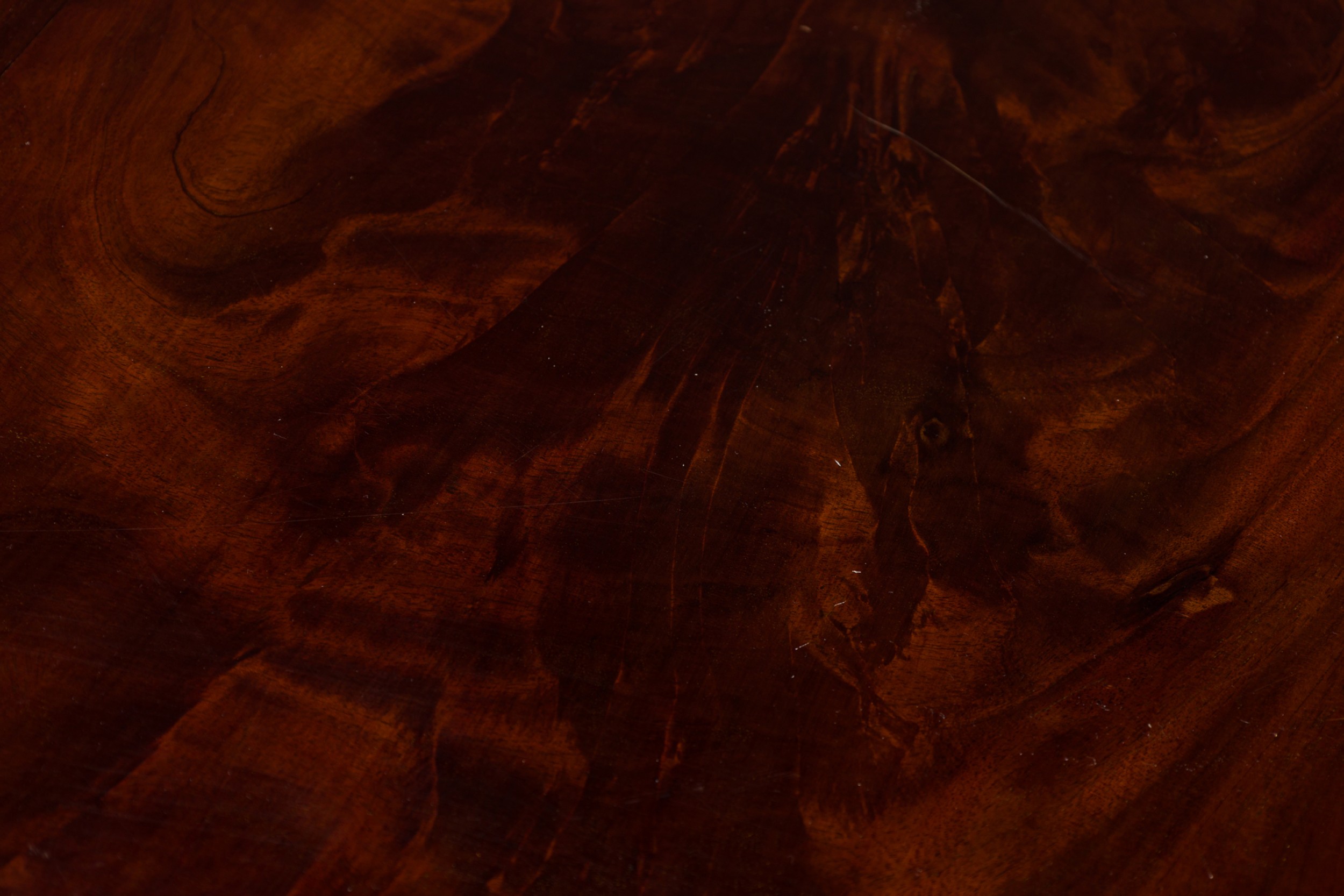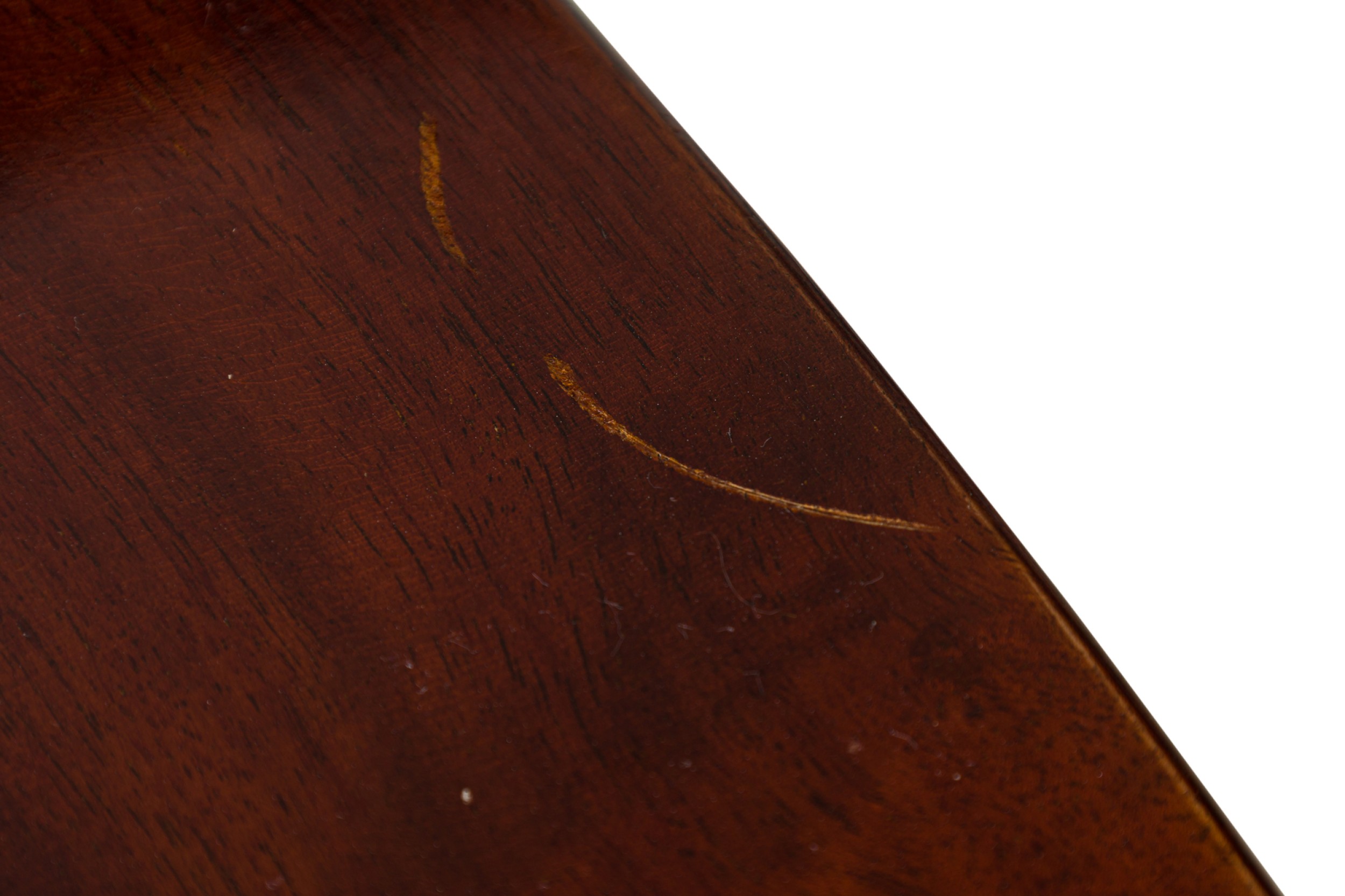 Style: English Materials & Techniques: Mahogany, veneer, wood Category: Tables Condition: Some top surface wear, losses on trim. Good; Minor losses