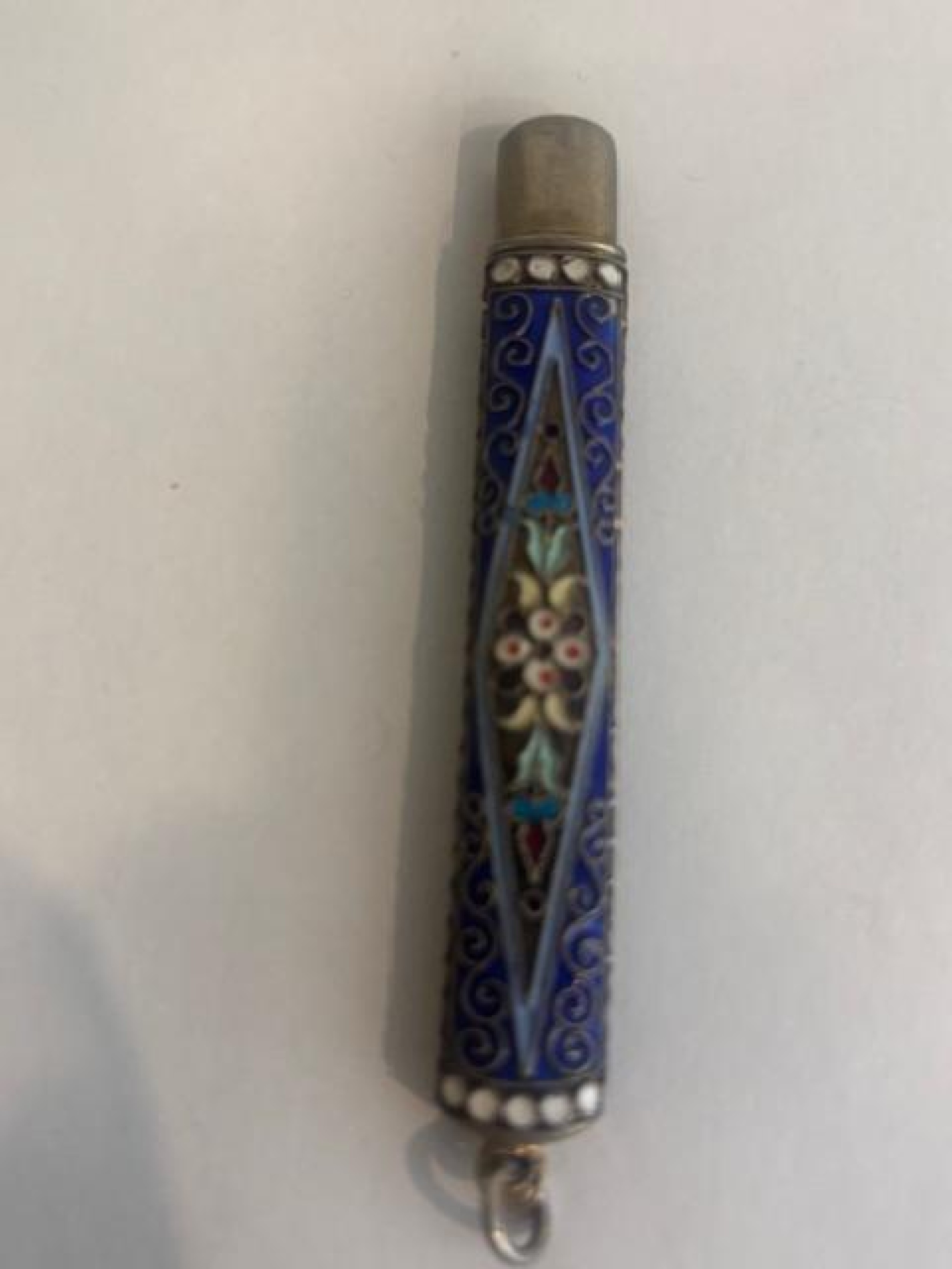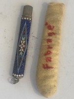Russian (early 20th Century) Faberge Style Enamel Silver Gilt small narrow pencil case