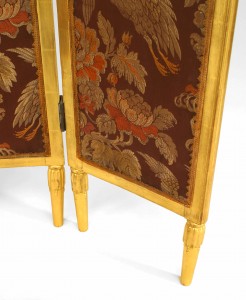 French Art Deco 3-Fold Gilt Screen with Upholstered Panels