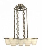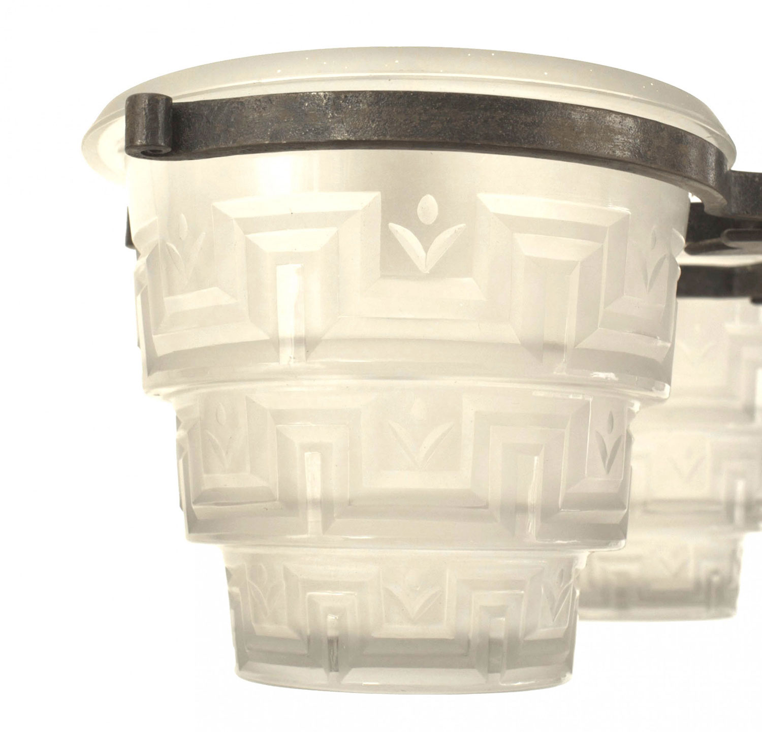 Edgar Brandt French Art Deco Brandt Wrought Iron and Glass Chandelier