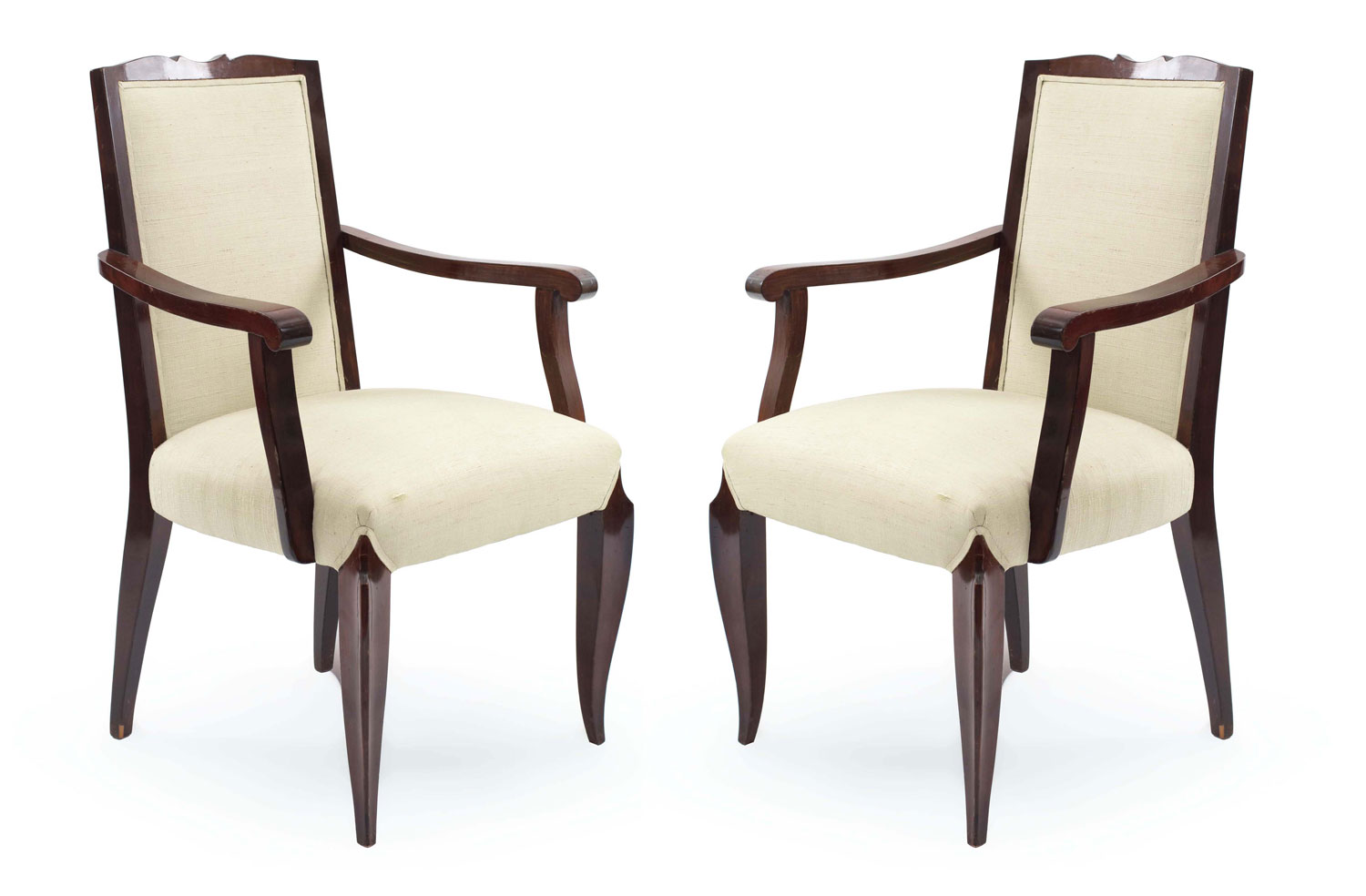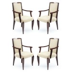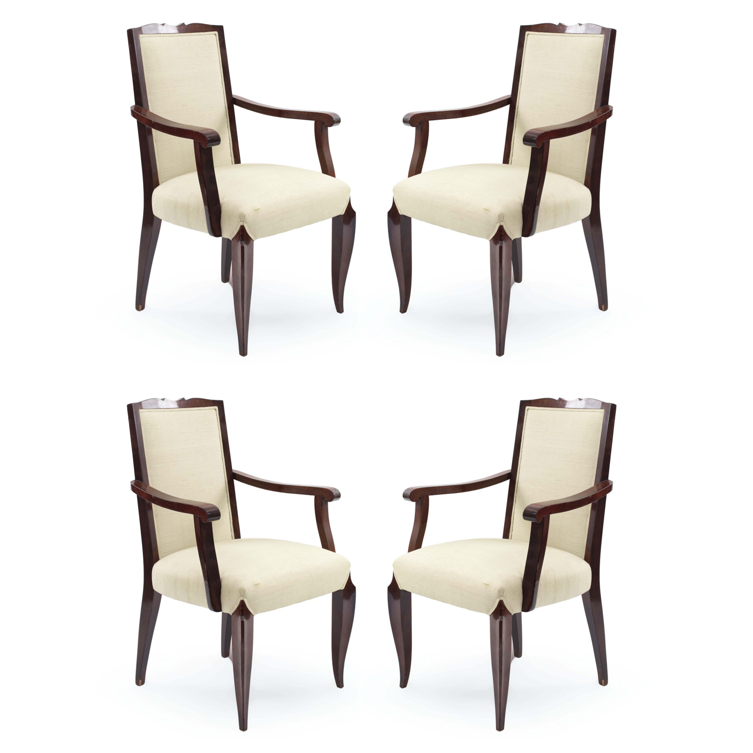 Set of 4 French Art Deco Cream and Mahogany Arm Chairs