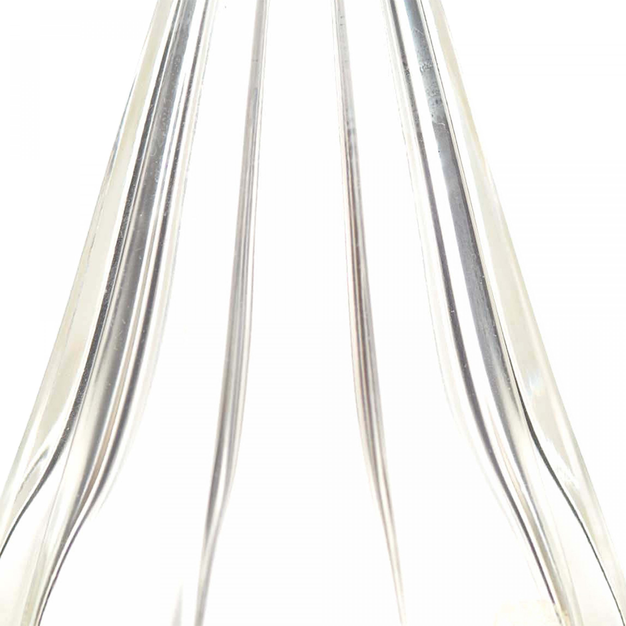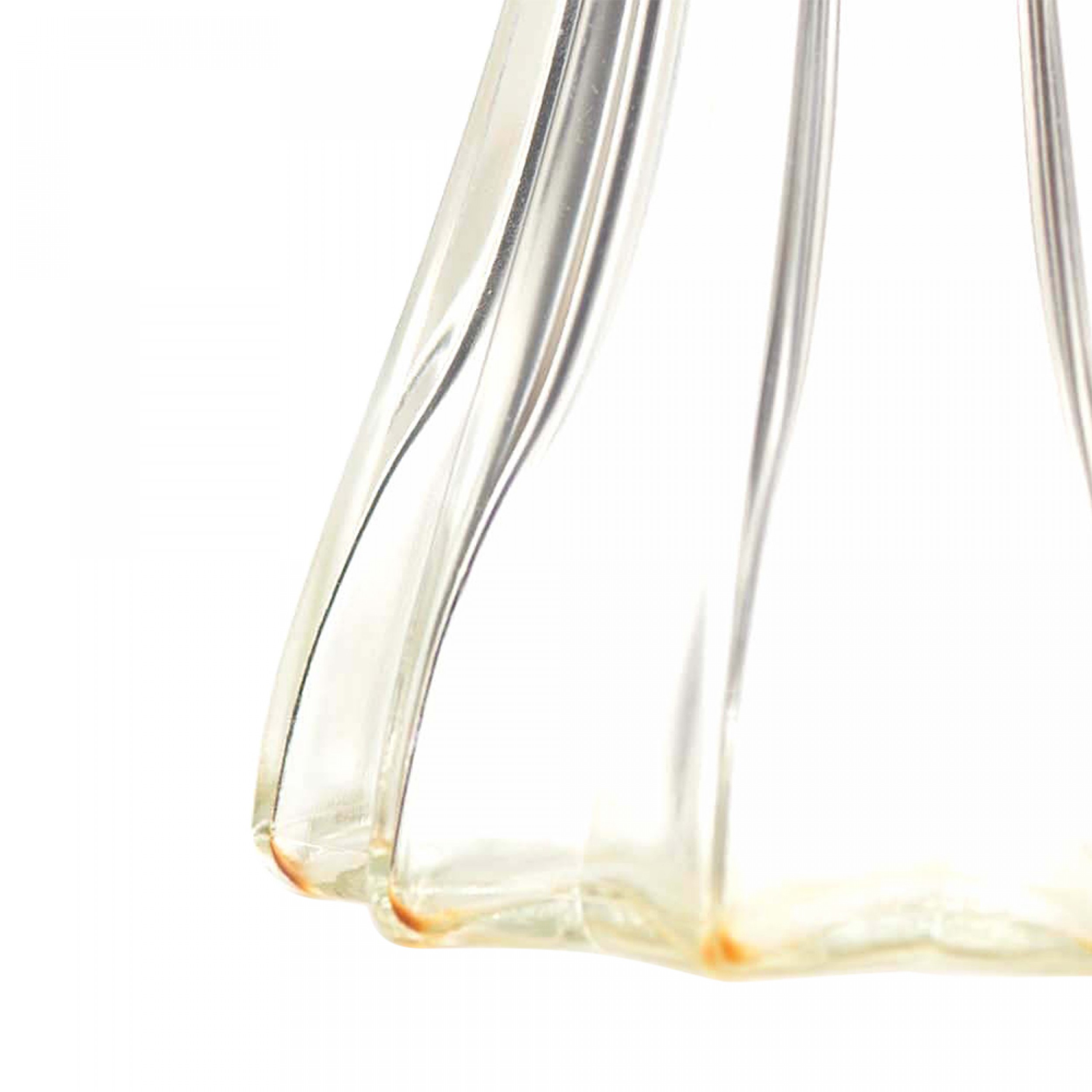 French Art Deco clear glass ribbed perfume bottle (INTOXICATION by D'ORSAY) with a star-shaped base tapering into a narrow neck and a matching stopper.