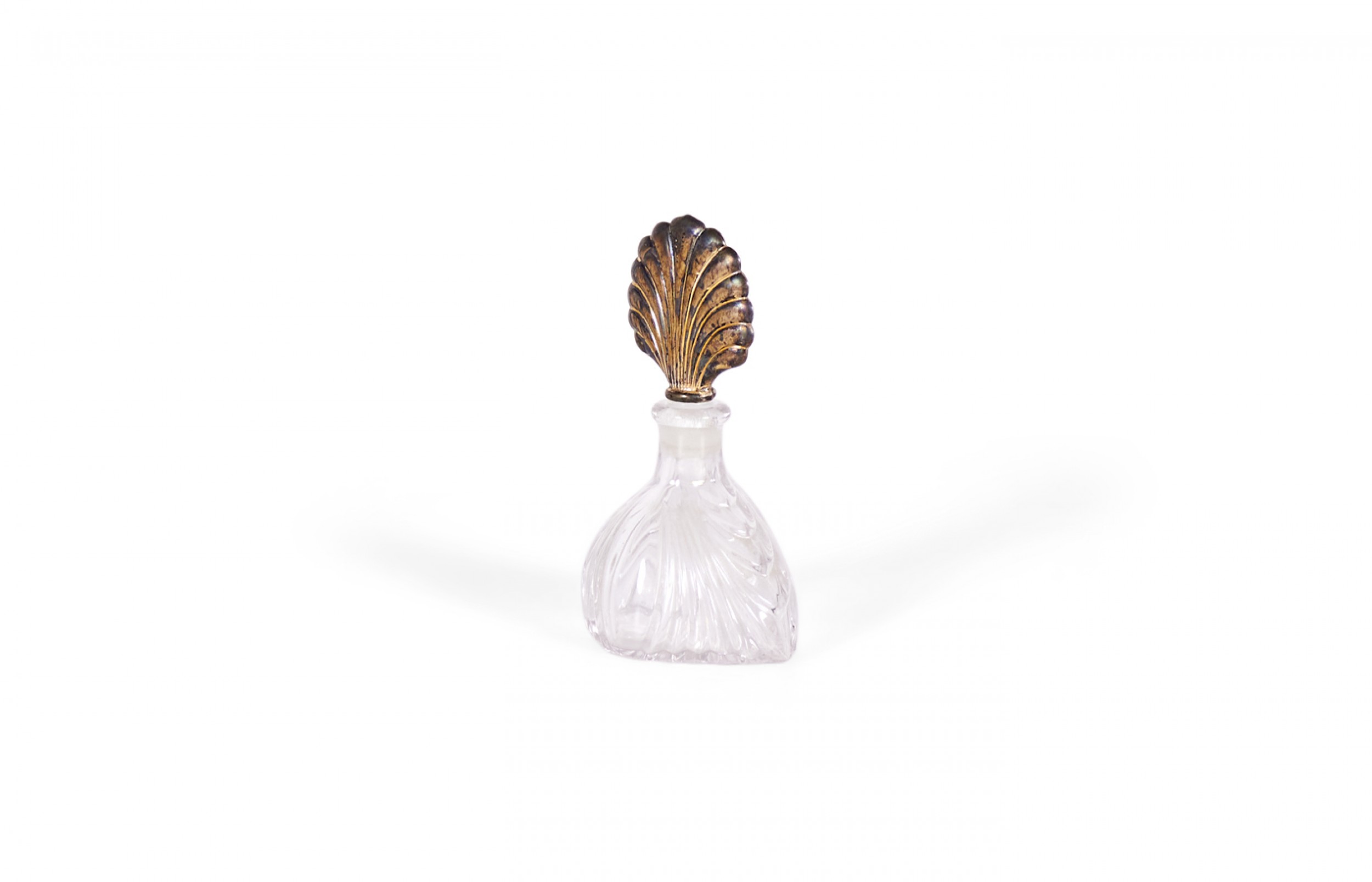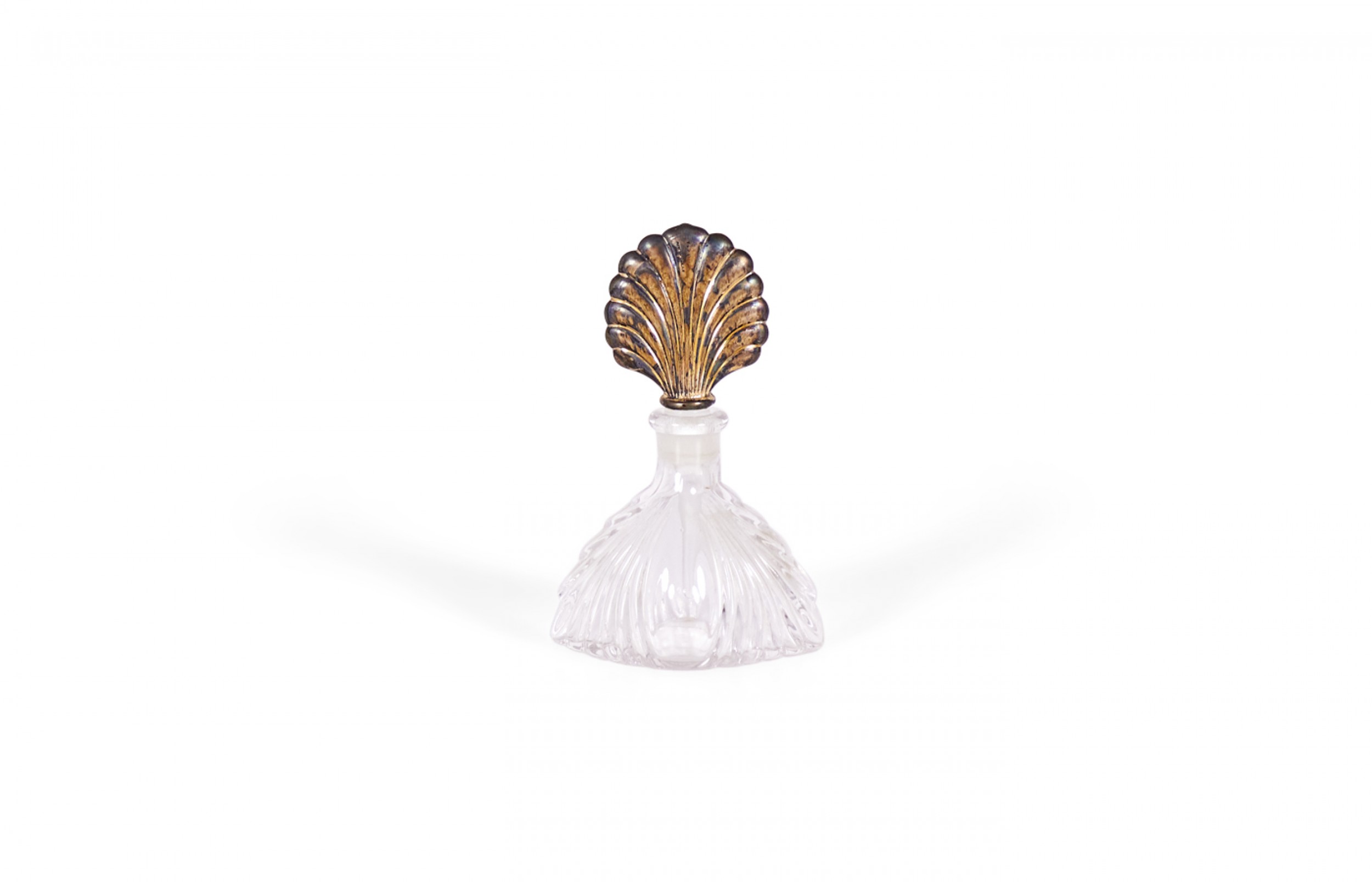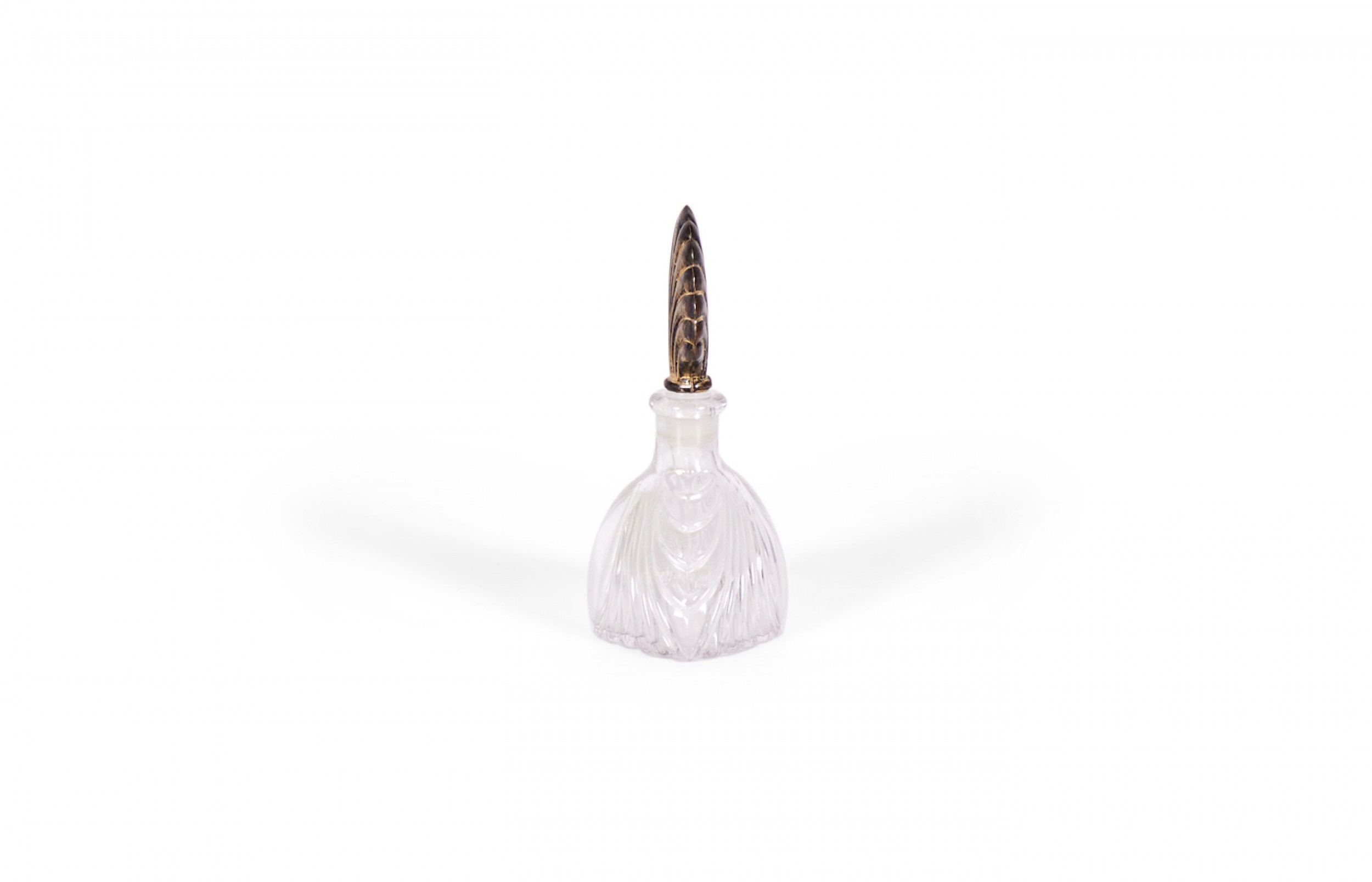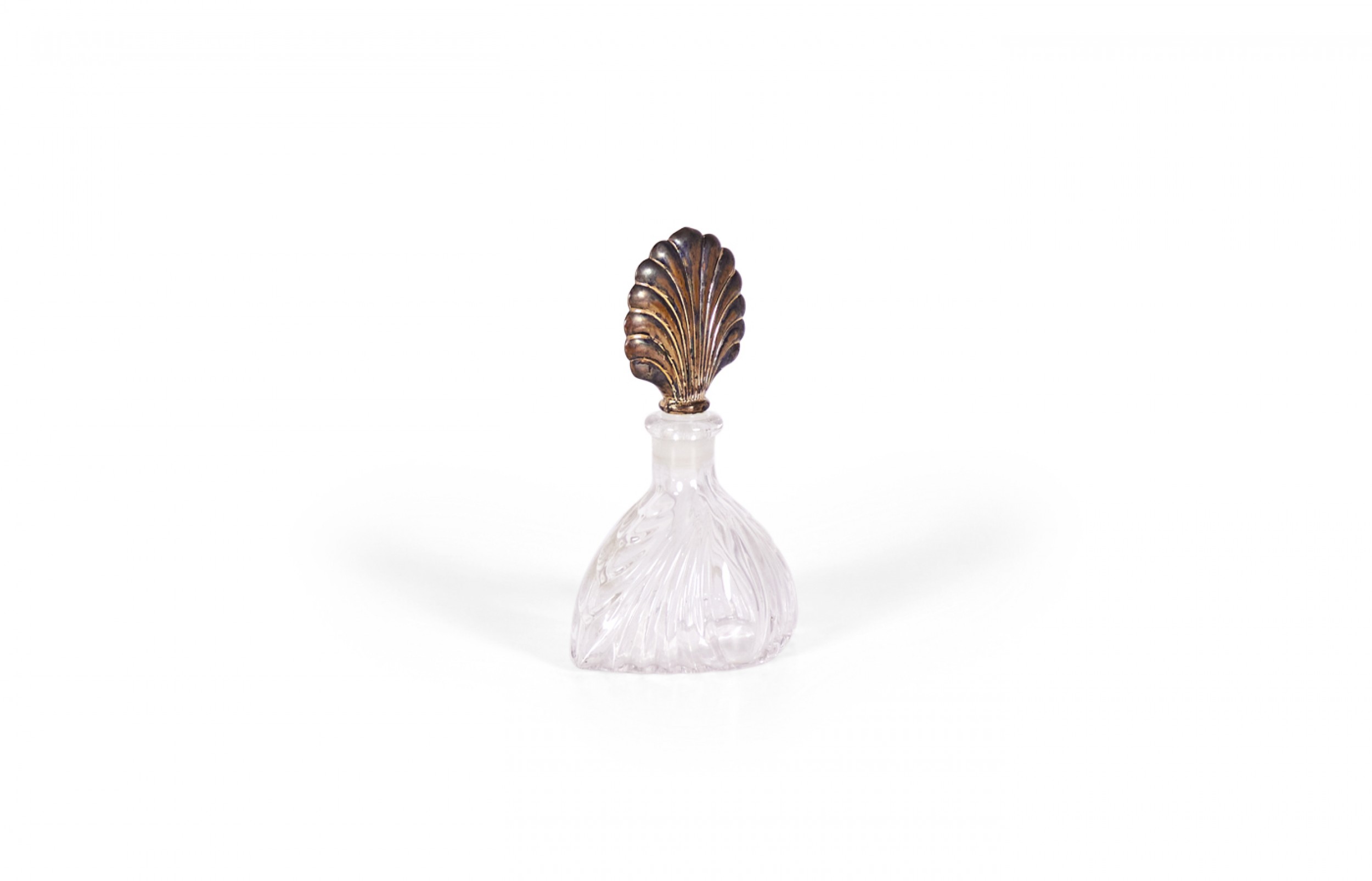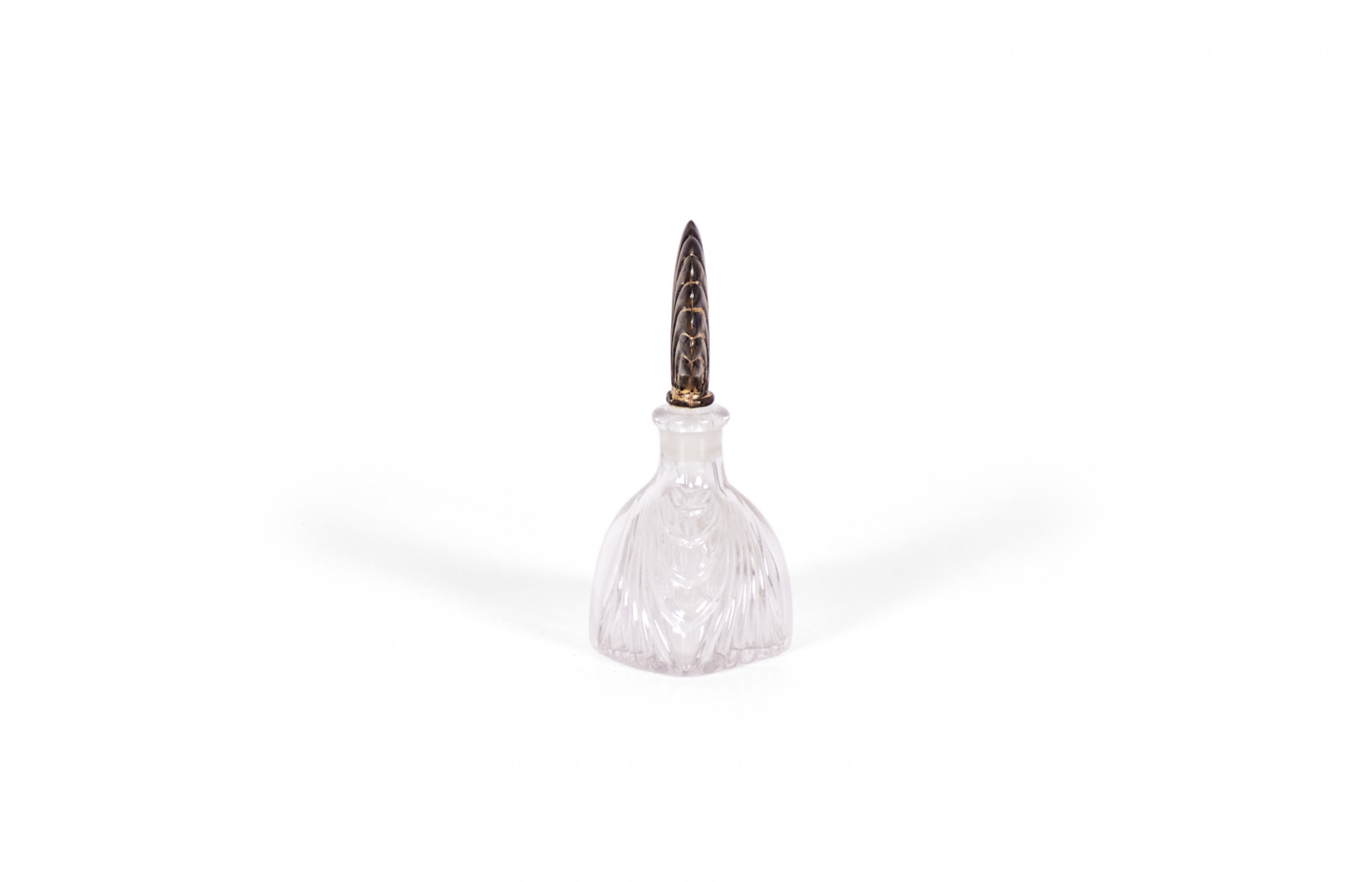 French Art Deco molded clear glass perfume bottle with a sterling silver fan stopper..