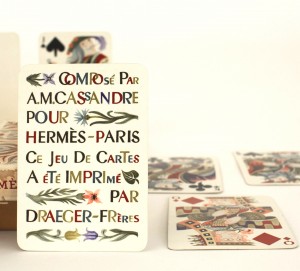 SET of 2 decks of French Art Deco playing cards in a tan cardboard case (HERMES) (PRICED AS SET)..