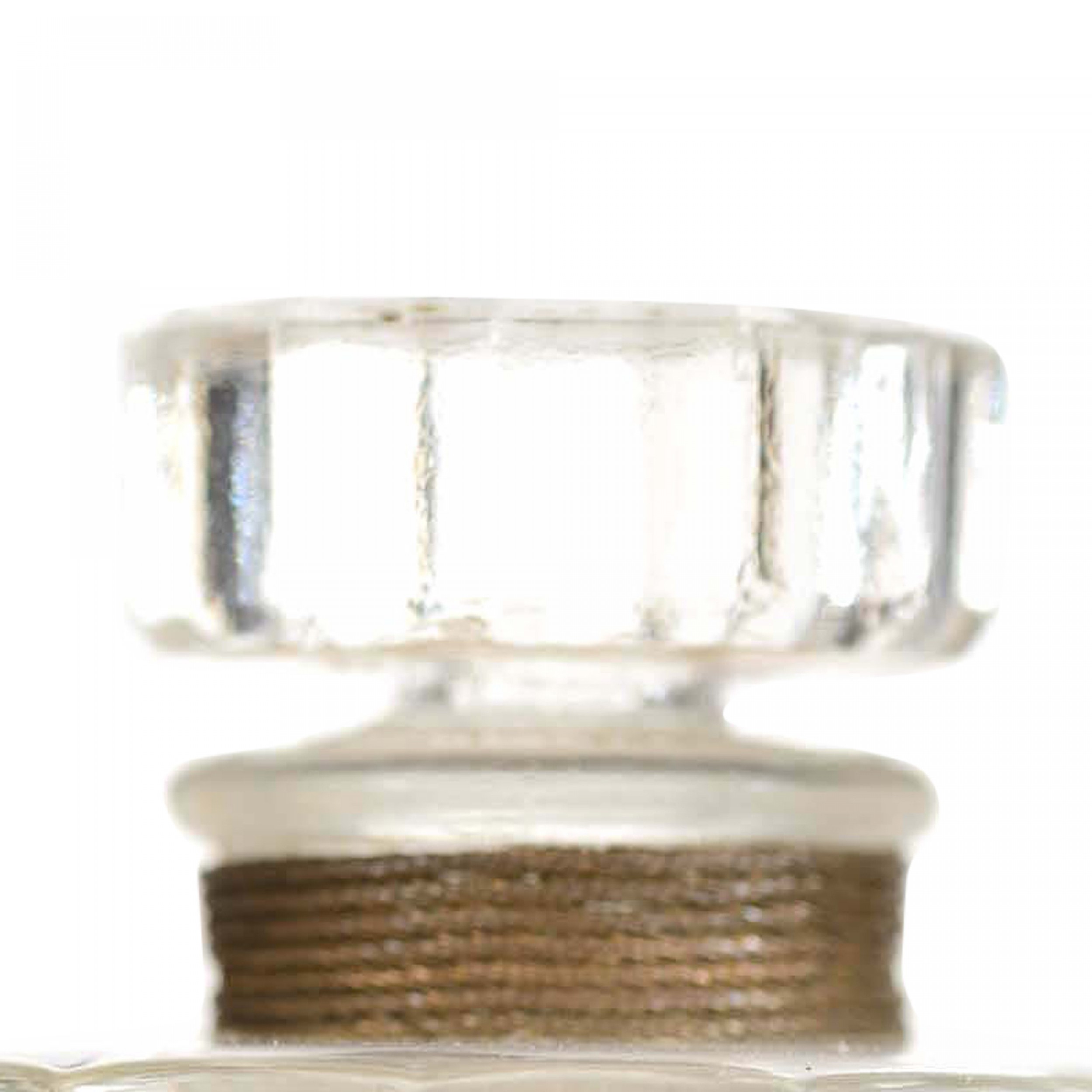 French Art Deco cylindrical clear glass perfume bottle (SORTILEGE by LE GALION) with vertical ribbing, a silver foil label and a matching stopper..