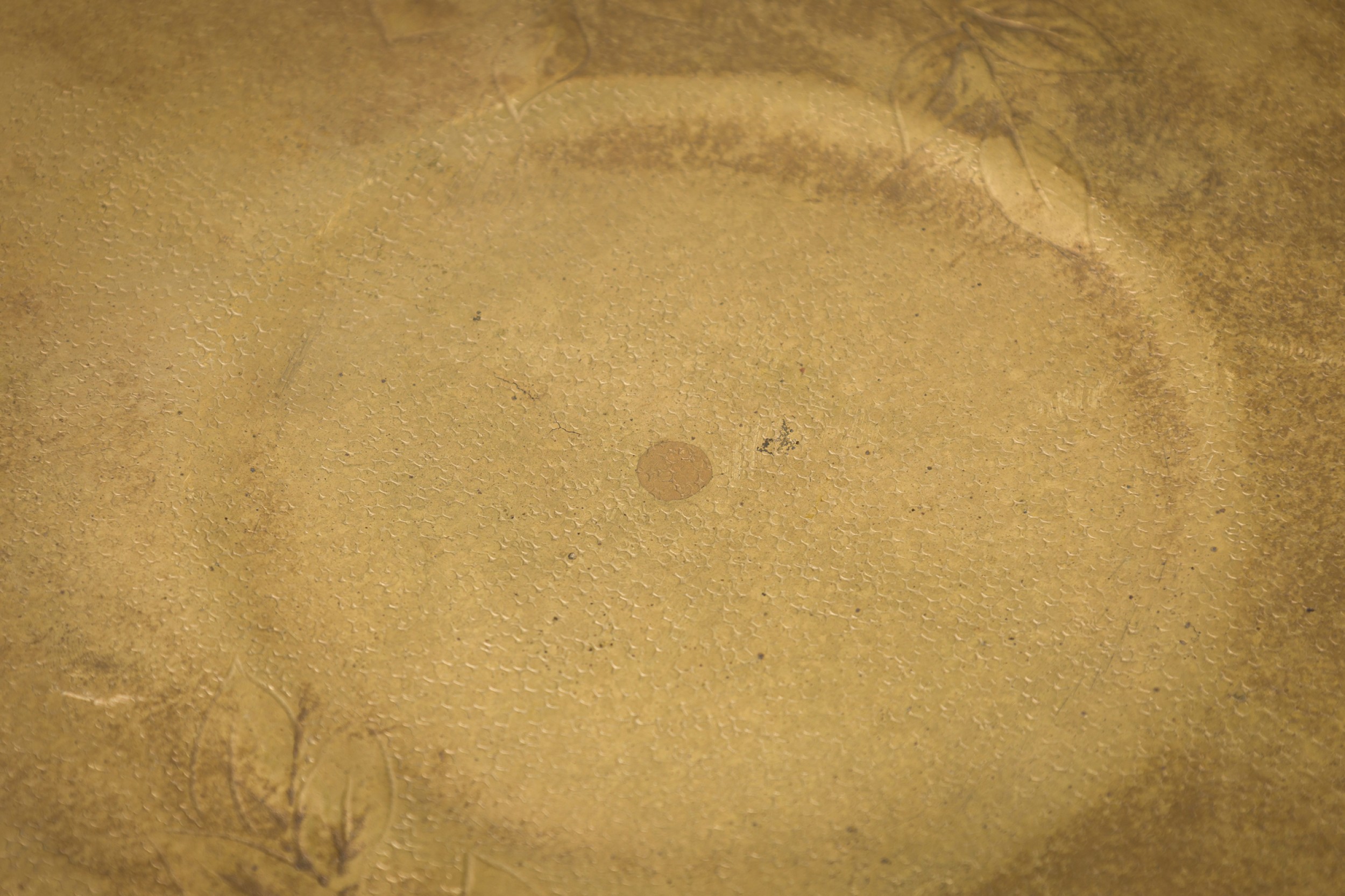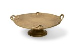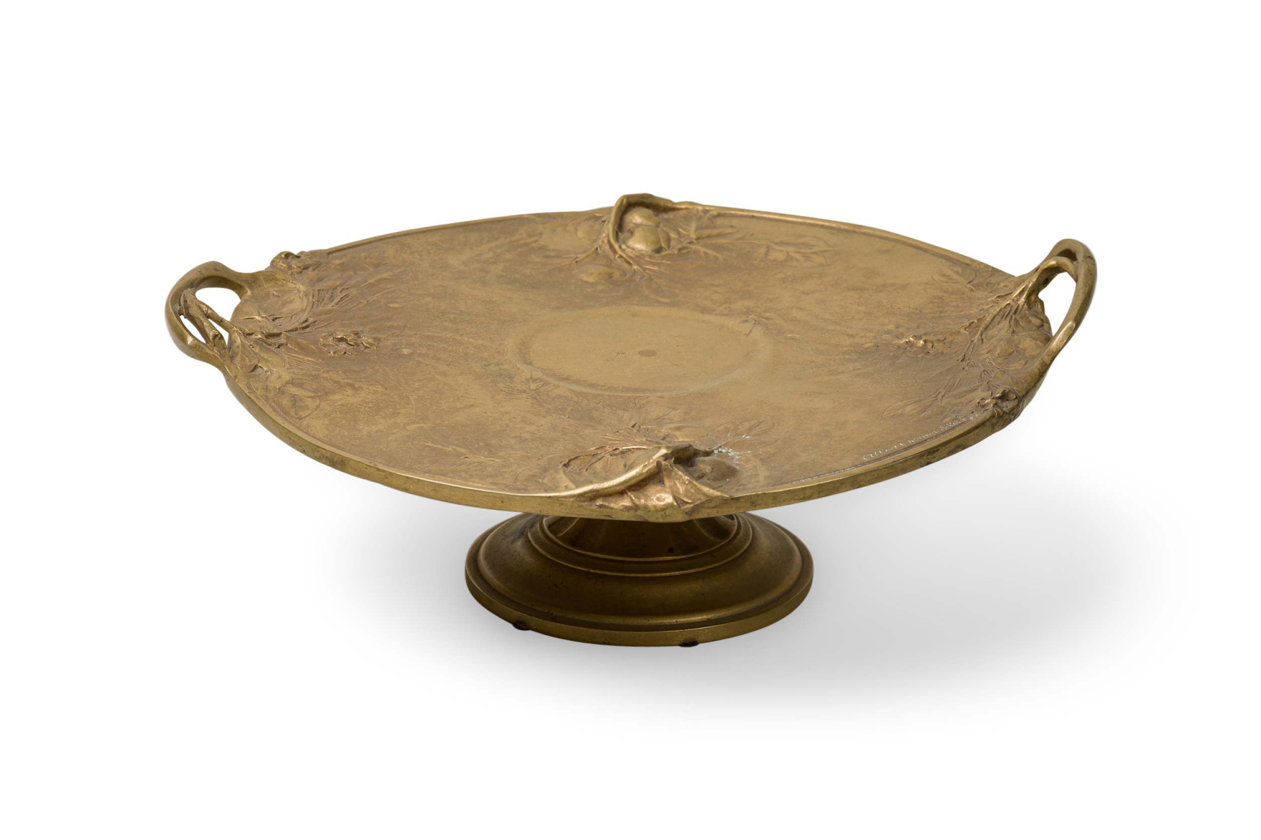 French Art Nouveau round bronze dore compote with twig design handles and floral relief on pedestal base (signed ALBERT CHEUREL SILOS)