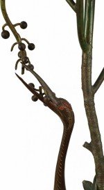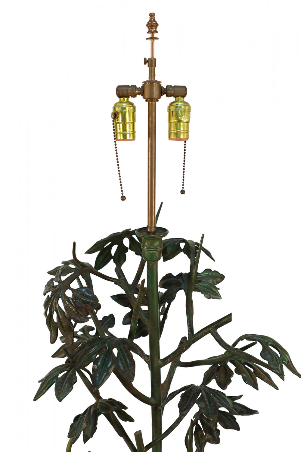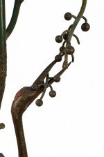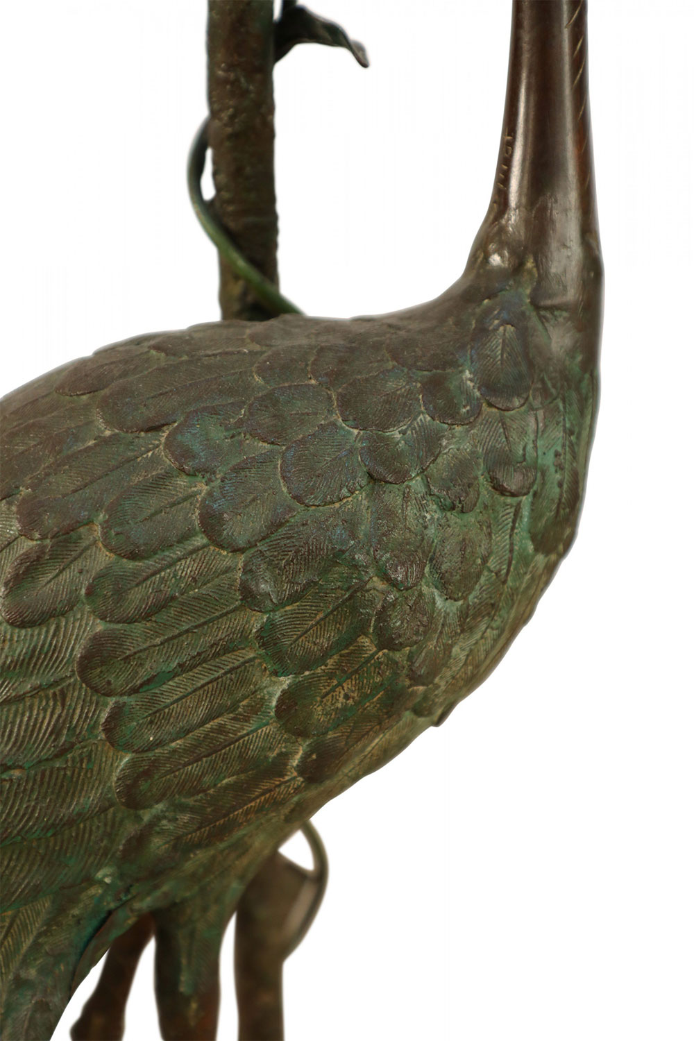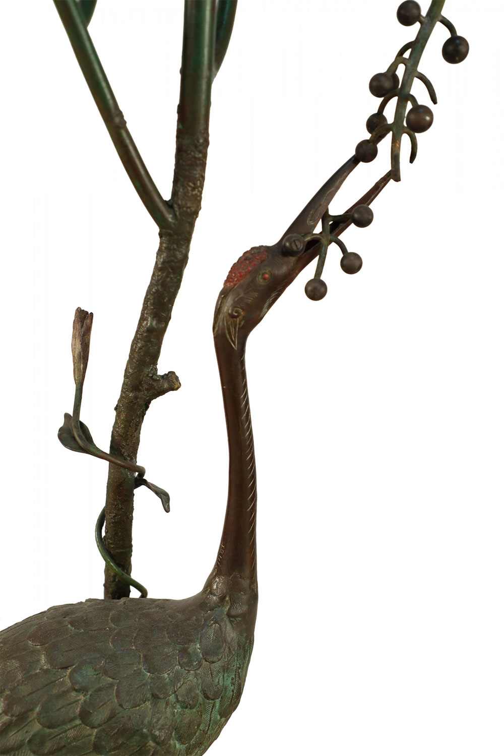 French Art Nouveau bronze floor lamp with heron eating berries from tree on a shaped base..