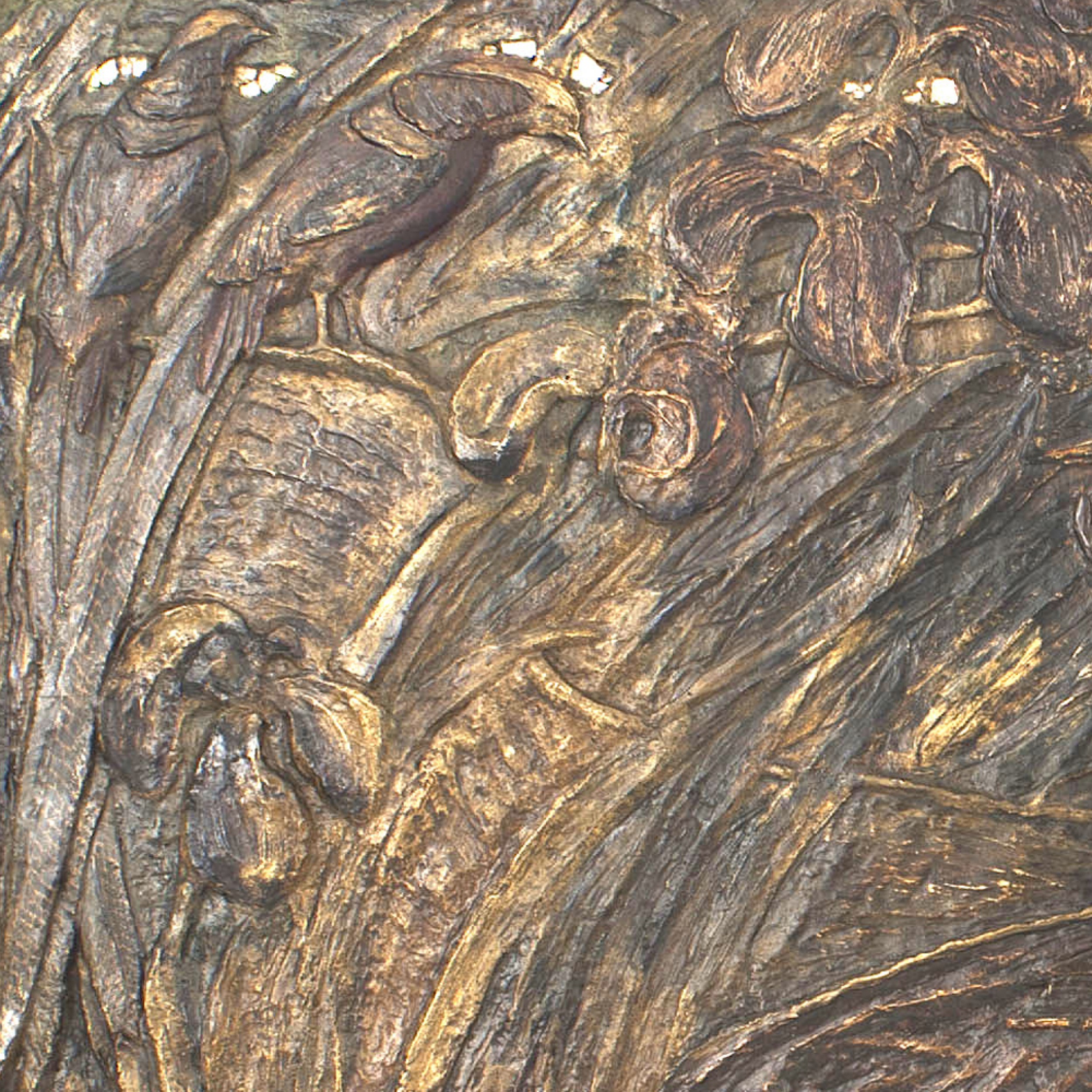 Style: Art Nouveau Materials & Techniques: Carved, glass, inlaid, oak, pearl, plaster Category: Cleared Art