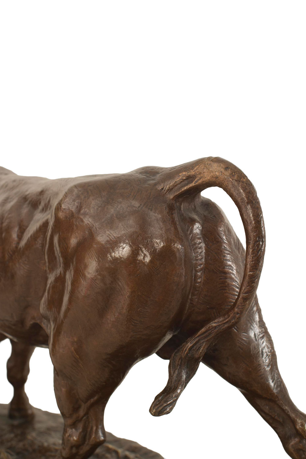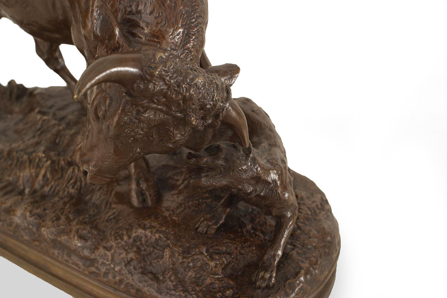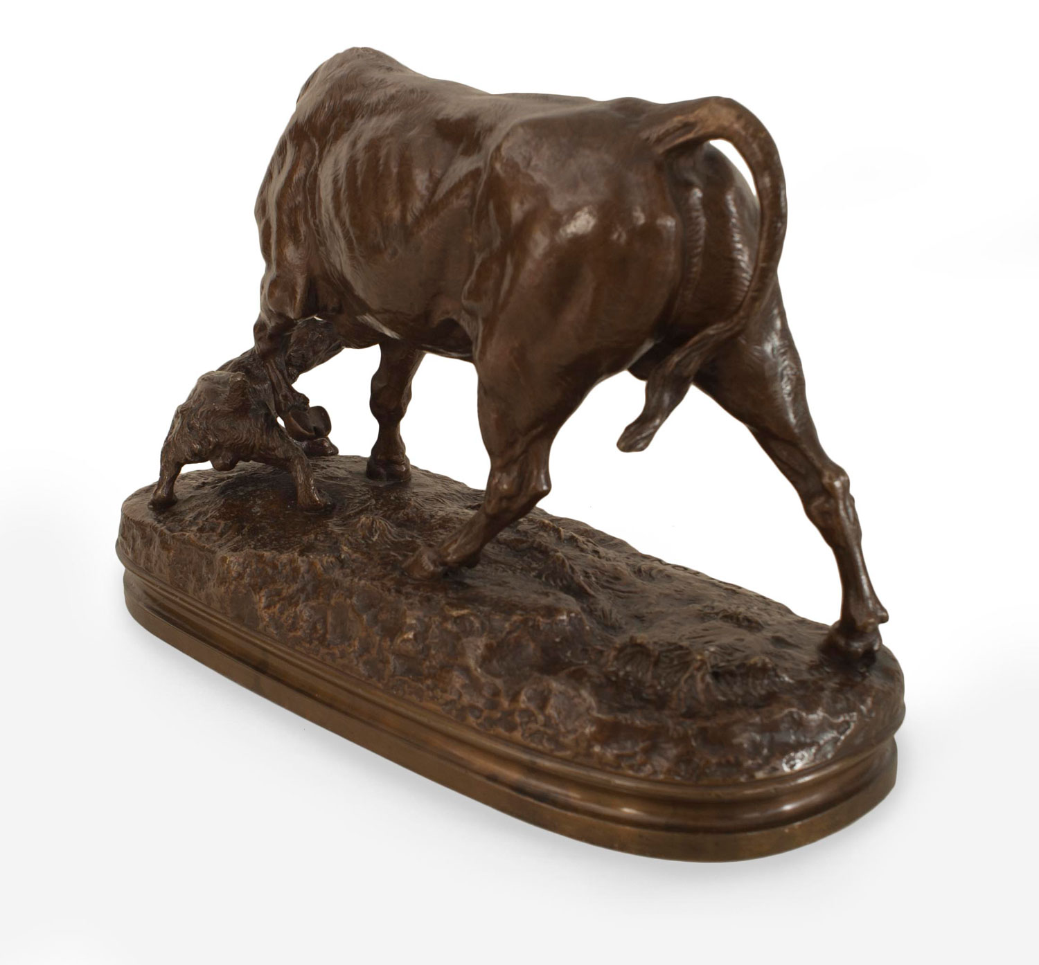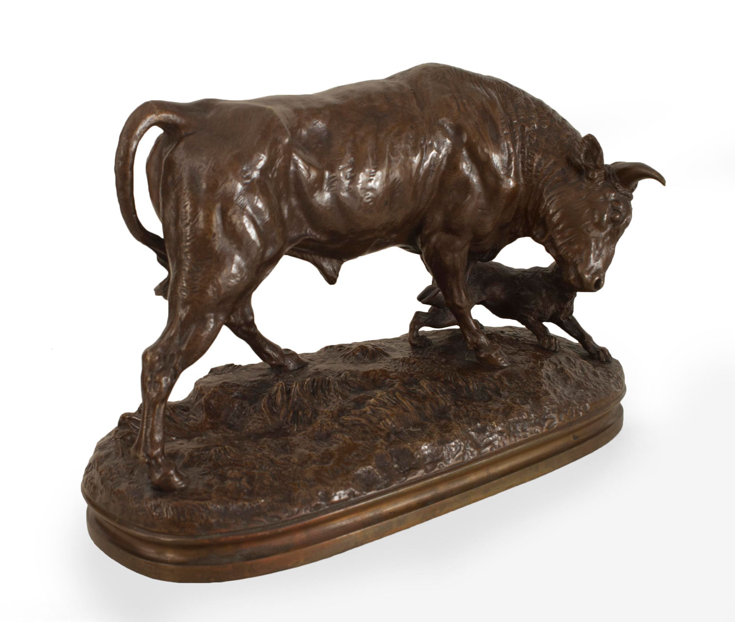 French bronze figure of bull with attacking dog on an oval base (Valton) (19/20th Cent.)