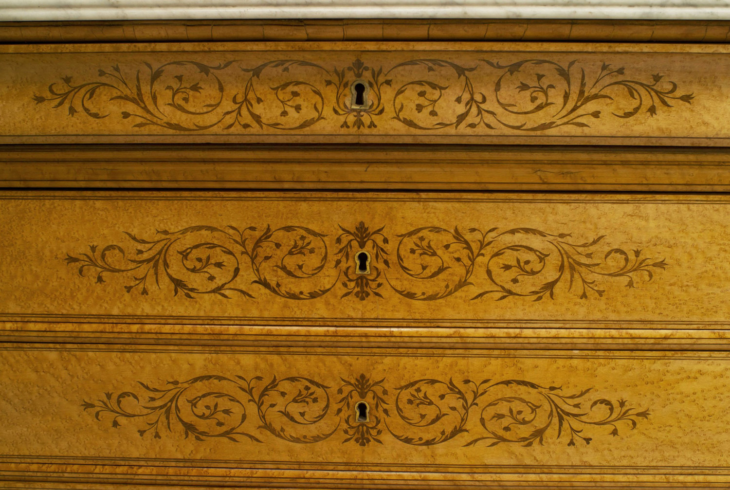 Style: French Materials & Techniques: Inlaid, maple, marble Category: Cabinets & Case Goods, Bedroom